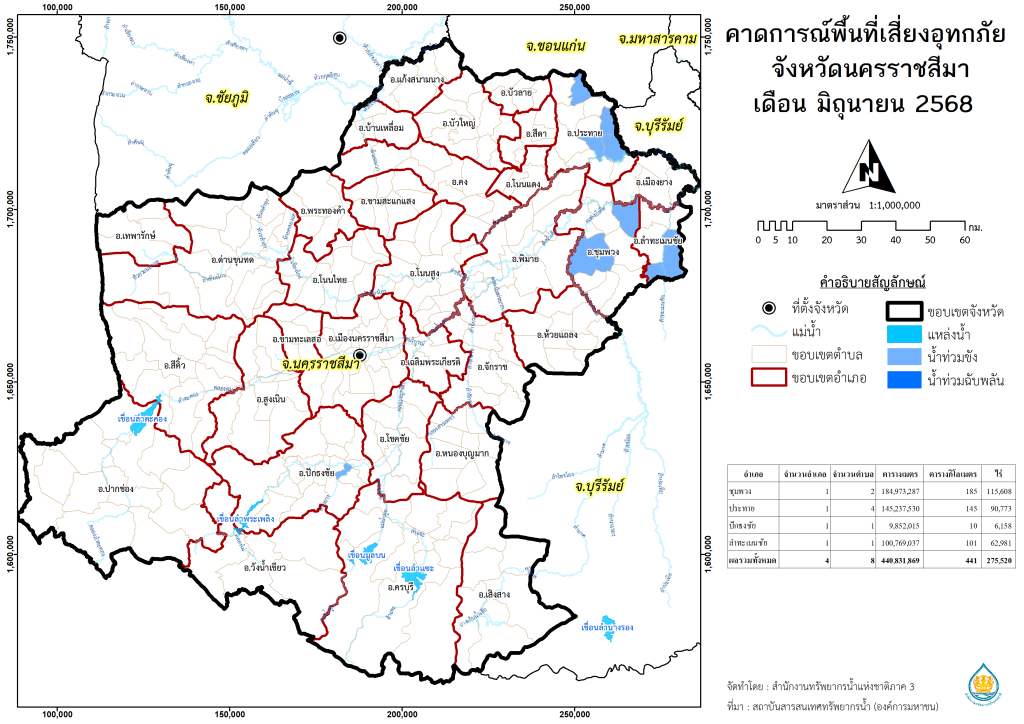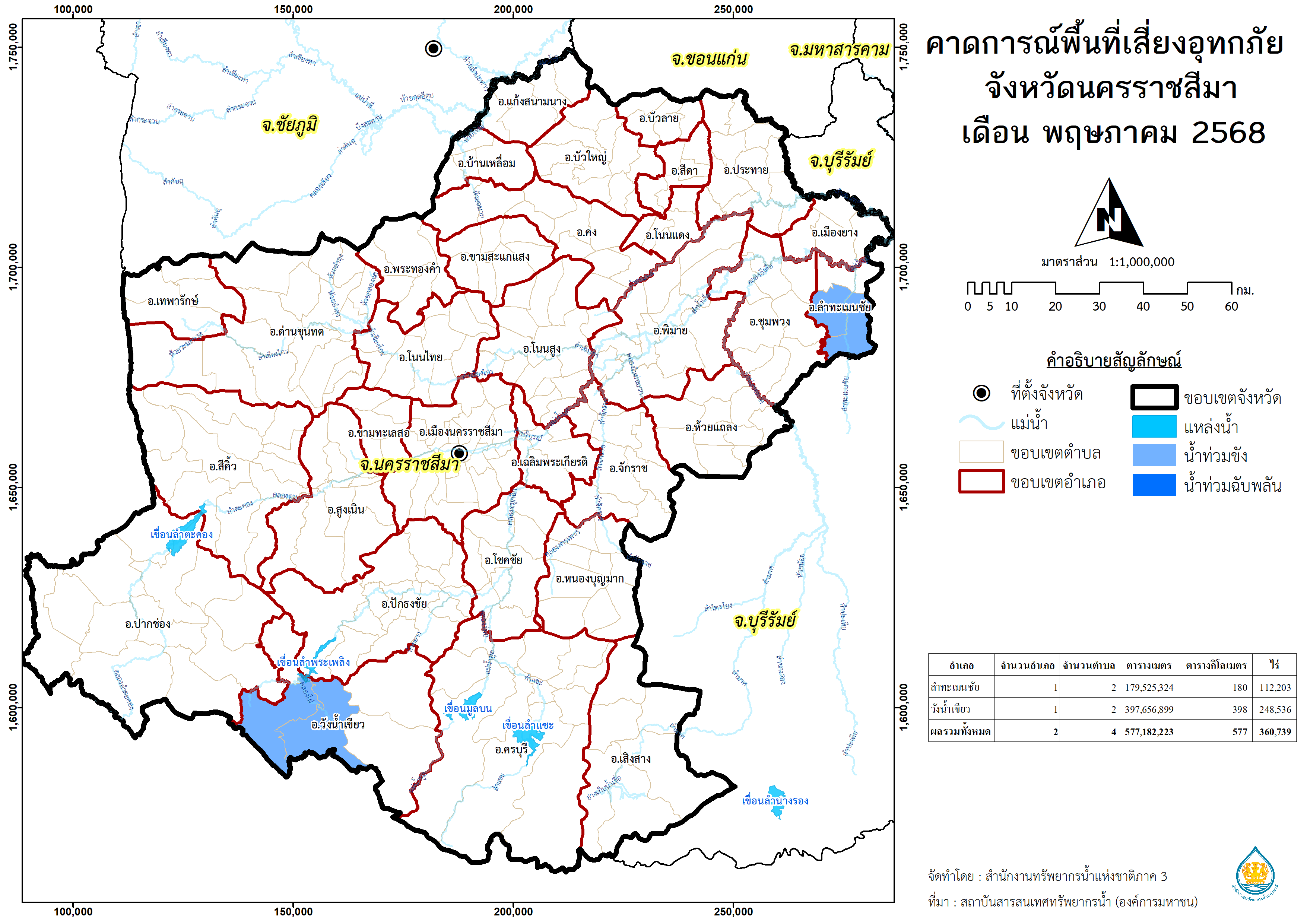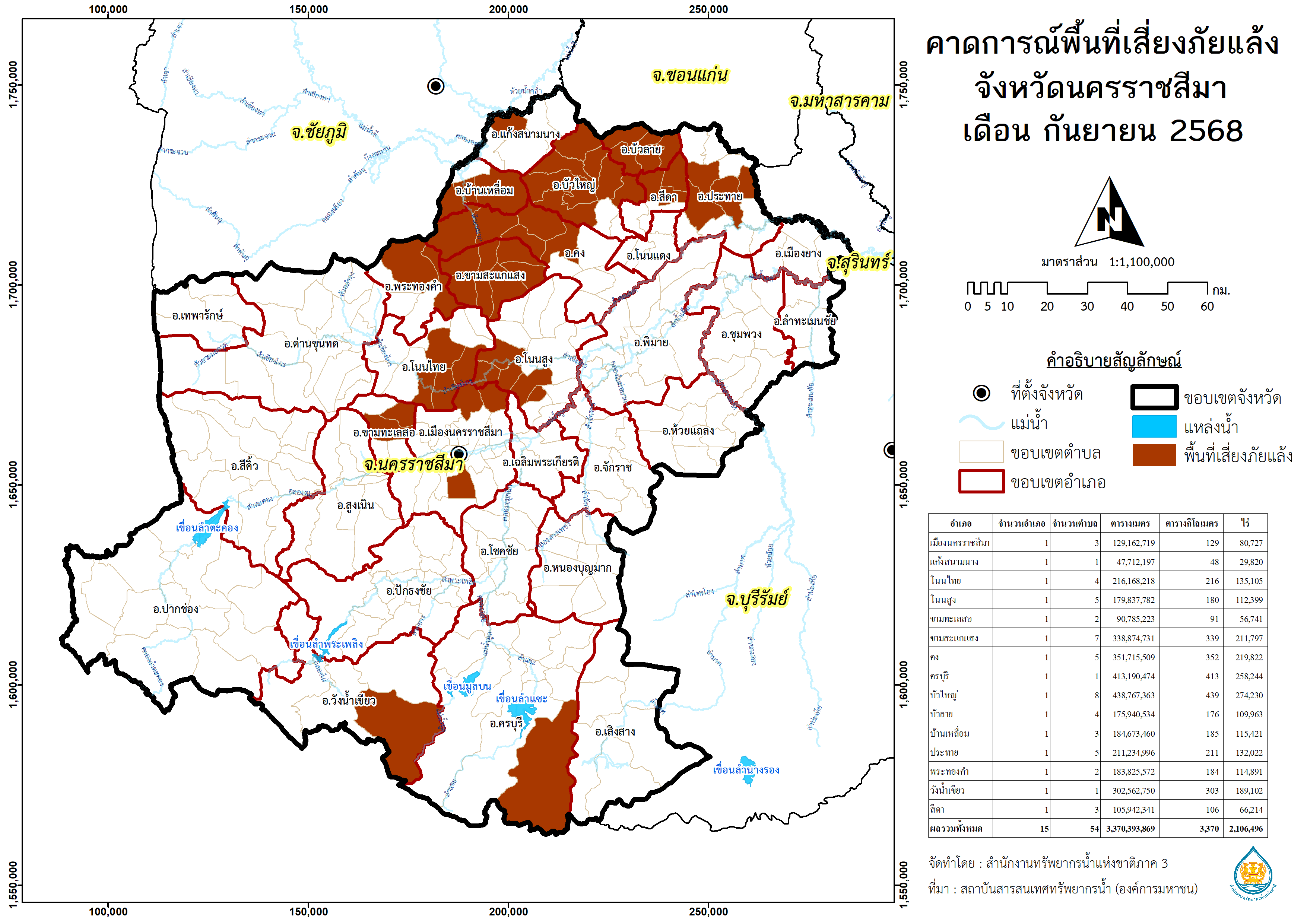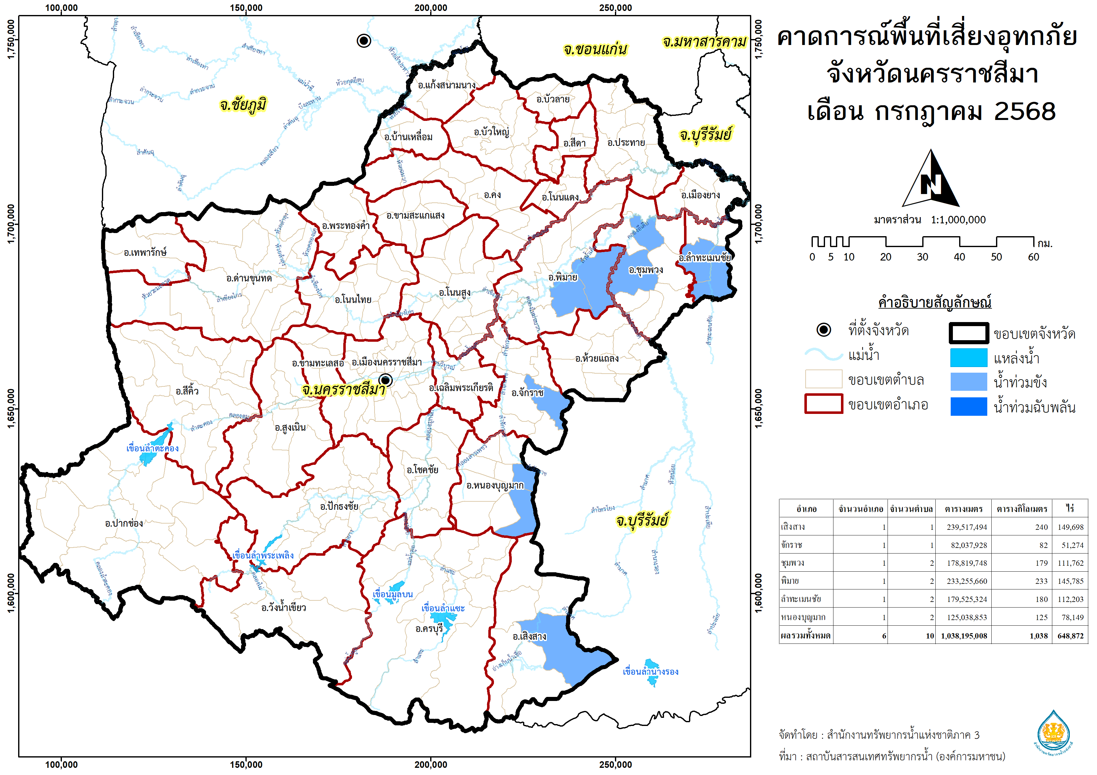 พื้นที่เสี่ยงภัยแล้งจากฝนทิ้งช่วง จังหวัดนครราชสีมา พ.ศ.2568 เดือน เมษายน พ.ศ.2568 เดือน พฤษภาคม พ.ศ.2568 เดือน มิถุนายน พ.ศ.2568 เดือน กรกฏาคม พ.ศ.2568 เดือน สิงหาคม พ.ศ.2568 เดือน กันยายน พ.ศ.2568 พื้นที่คาดการณ์พื้นที่เสี่ยงอุทกภัย จังหวัดนครราชสีมา พ.ศ.2568 เดือน เมษายน พ.ศ.2568 เดือน พฤษภาคม พ.ศ.2568 เดือน มิถุนายน พ.ศ.2568 เดือน กรกฏาคม พ.ศ.2568 เดือน สิงหาคม พ.ศ.2568 เดือน กันยายน พ.ศ.2568 พื้นที่คาดการณ์ฝน จังหวัดนครราชสีมา พ.ศ.2568 เดือน มกราคม พ.ศ.2568 เดือน กุมภาพันธ์ พ.ศ.2568 เดือน มีนาคม พ.ศ.2568 เดือน เมษายน พ.ศ.2568 เดือน พฤษภาคม พ.ศ.2568 เดือน มิถุนายน พ.ศ.2568