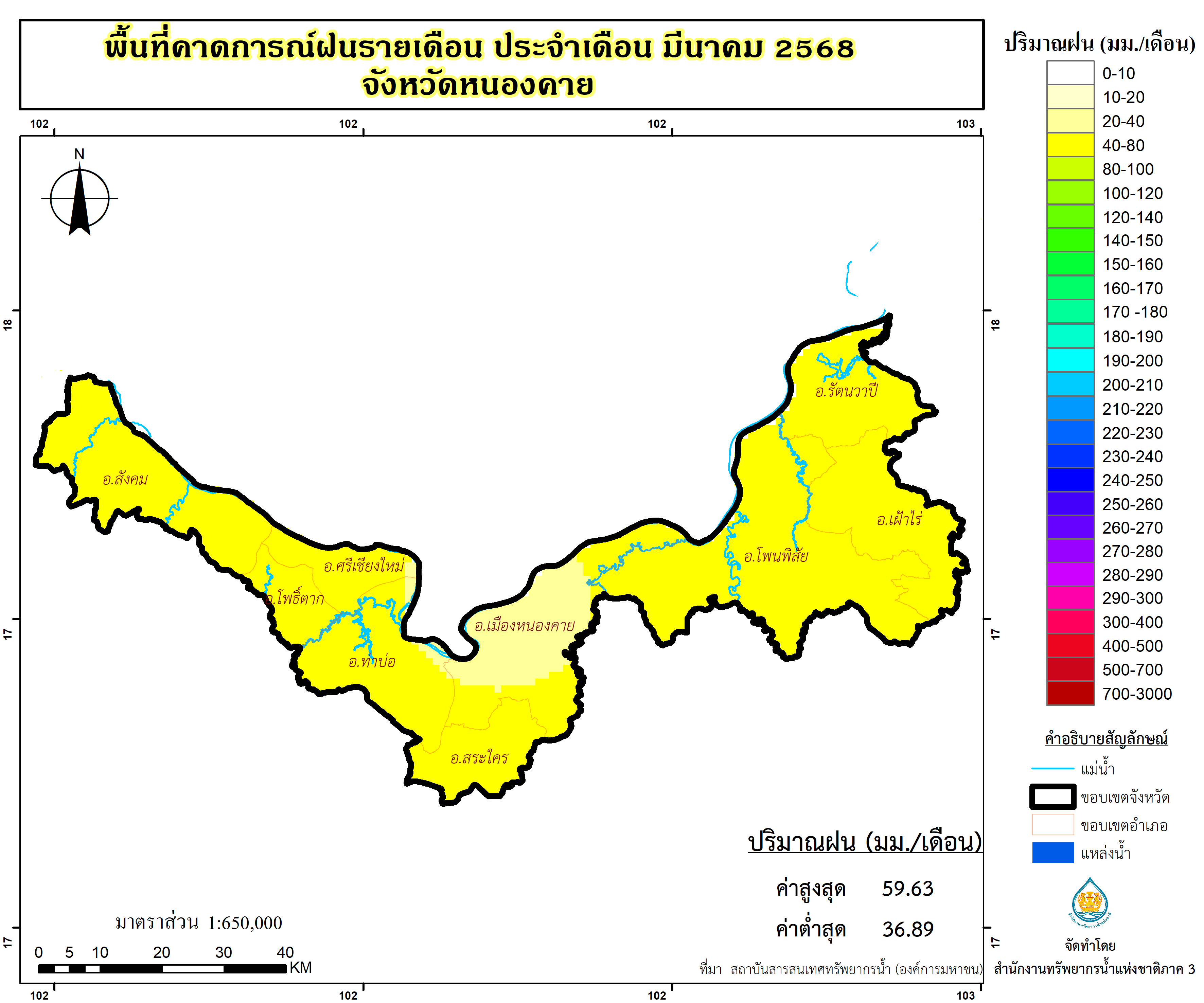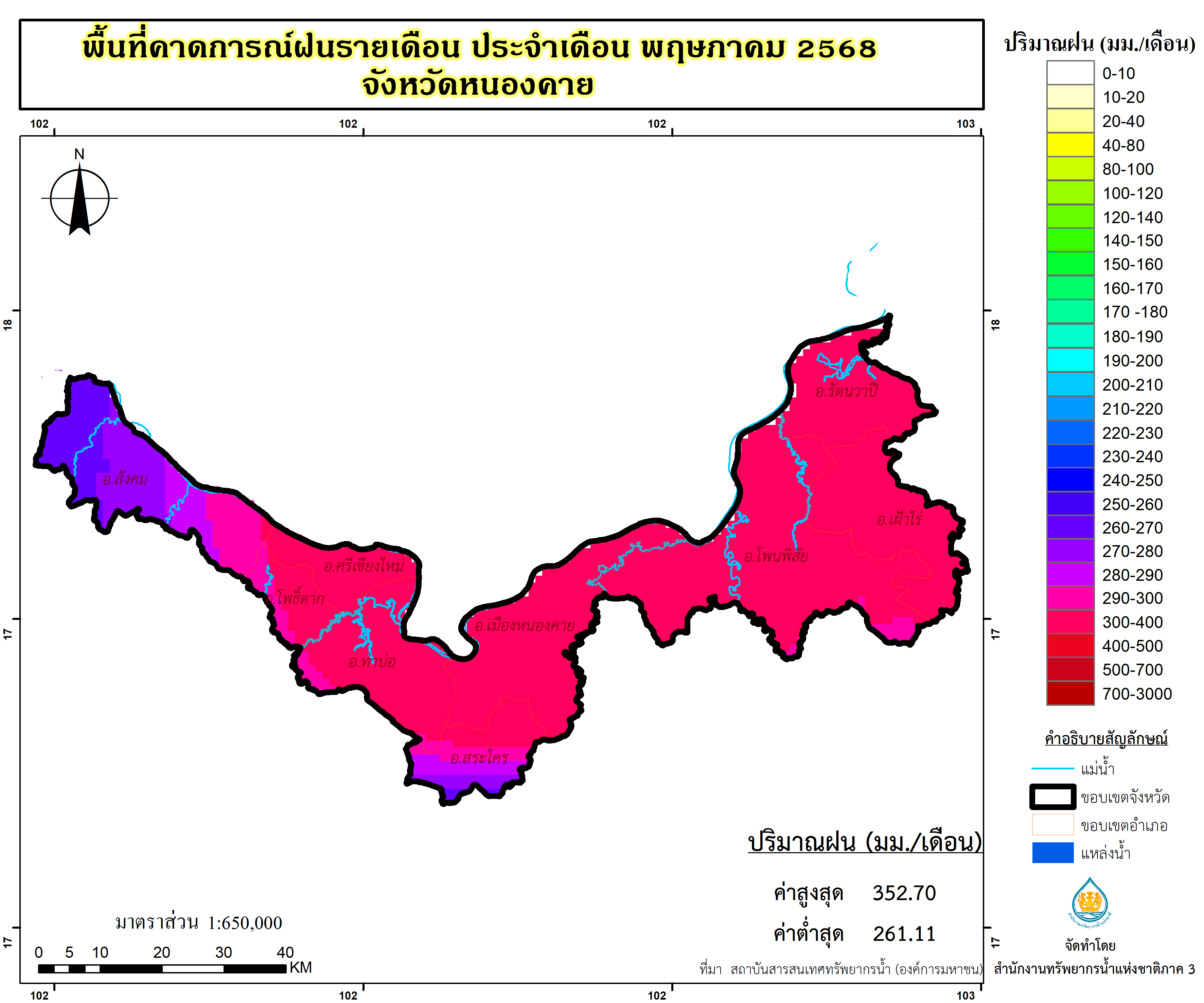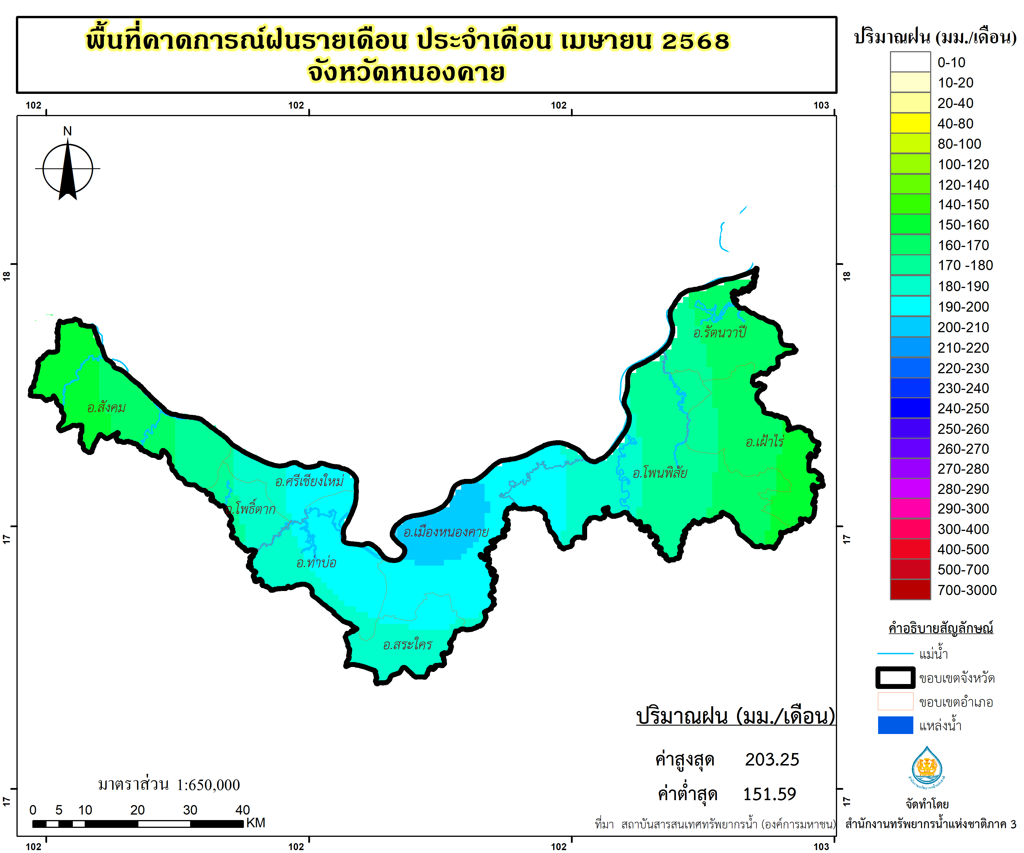 พื้นที่คาดการณ์ฝน จังหวัดหนองคาย พ.ศ.2568