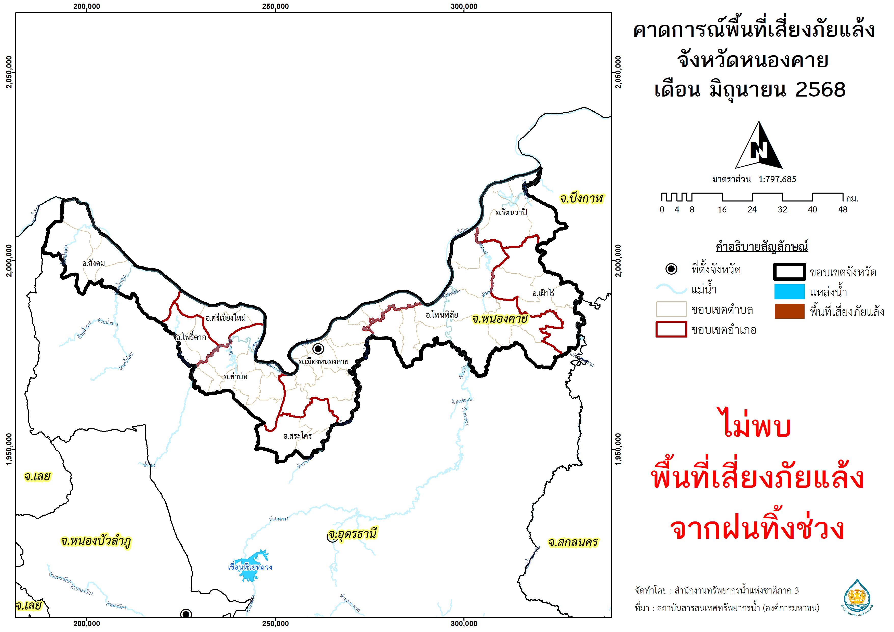 พื้นที่เสี่ยงภัยแล้งจากฝนทิ้งช่วง จังหวัดหนองคาย พ.ศ.2568