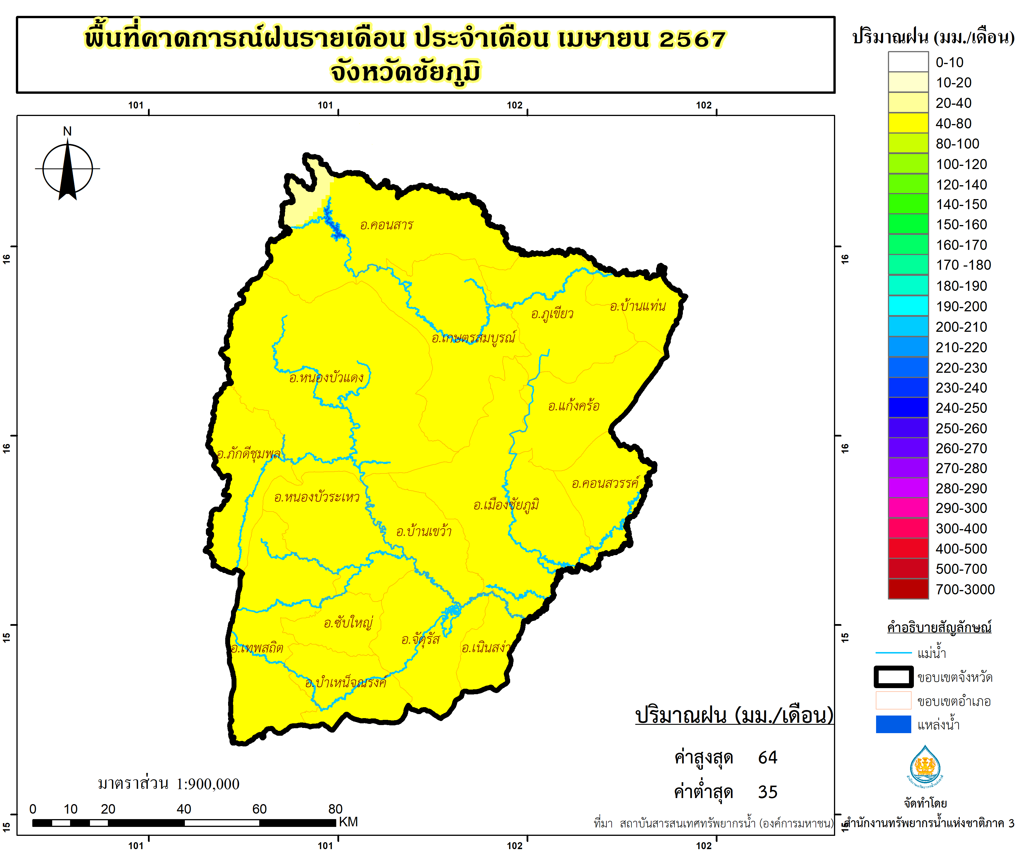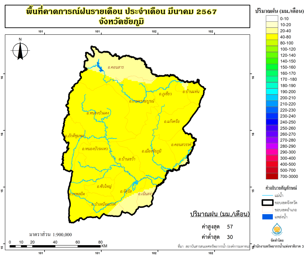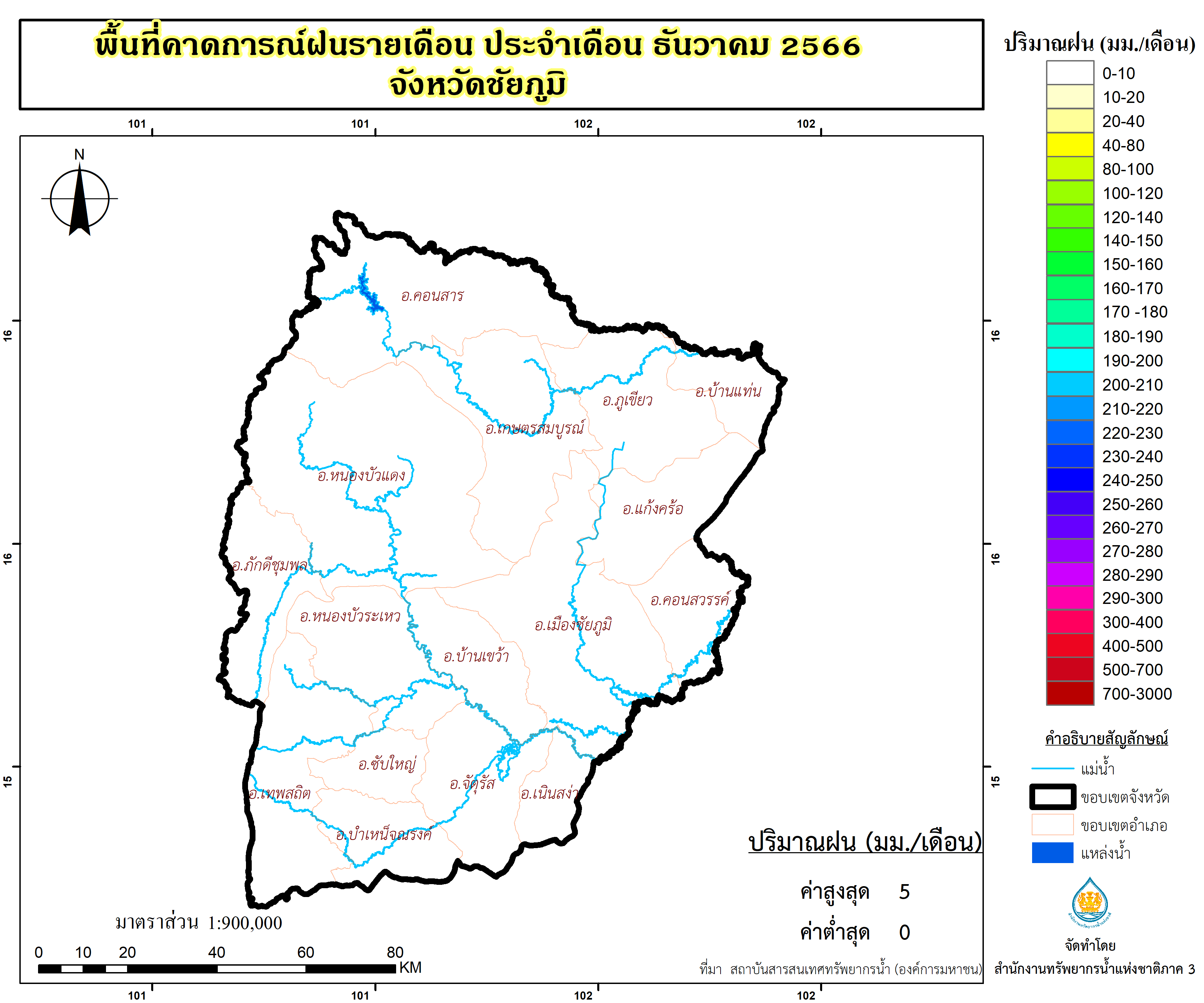 พื้นที่คาดการณ์ฝน จังหวัดชัยภูมิ พ.ศ.2566