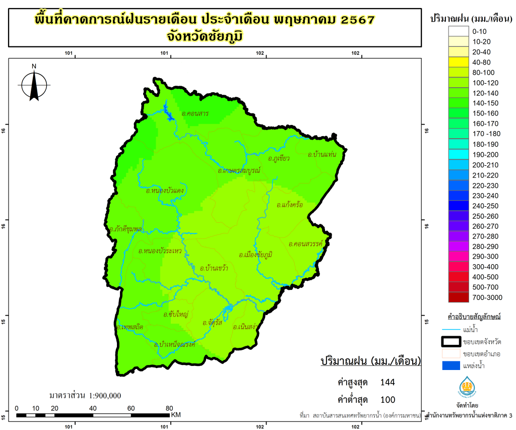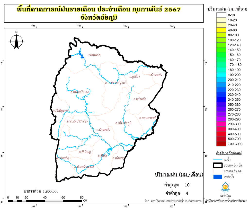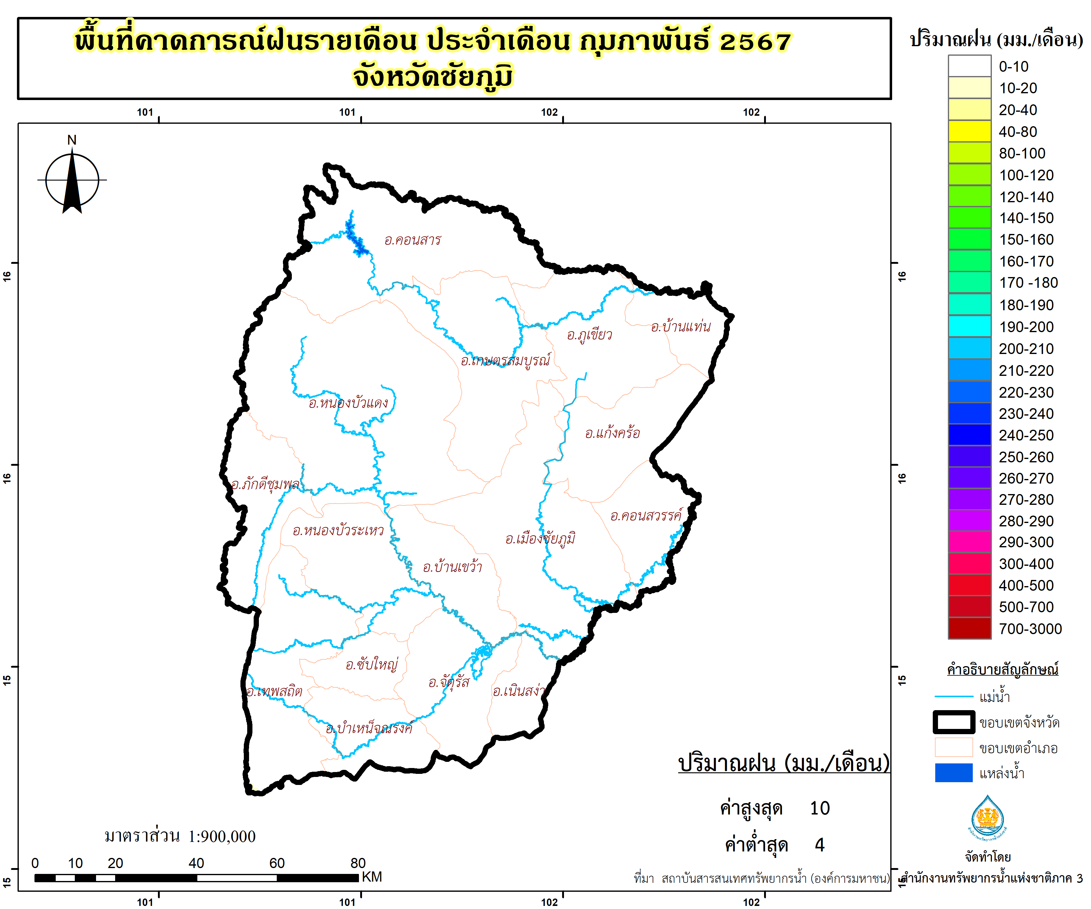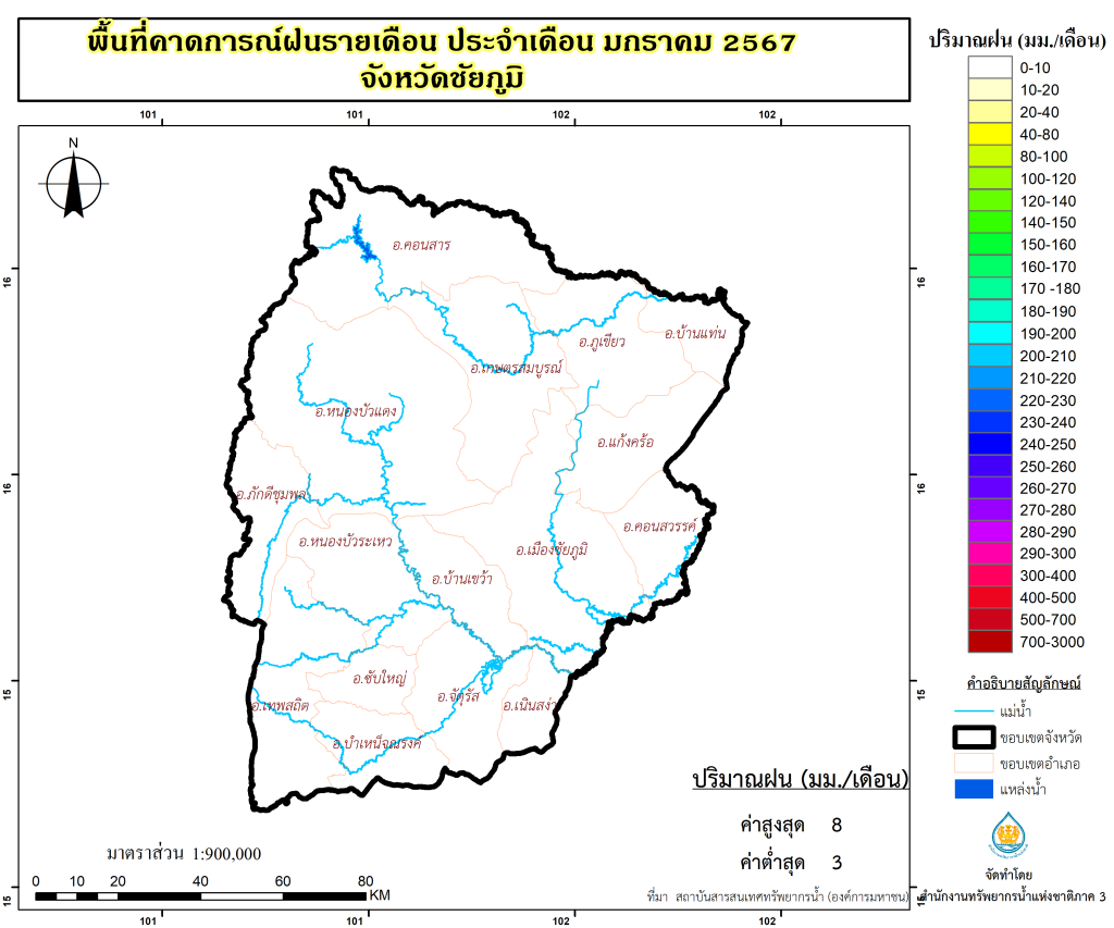 พื้นที่คาดการณ์ฝน จังหวัดชัยภูมิ พ.ศ.2566