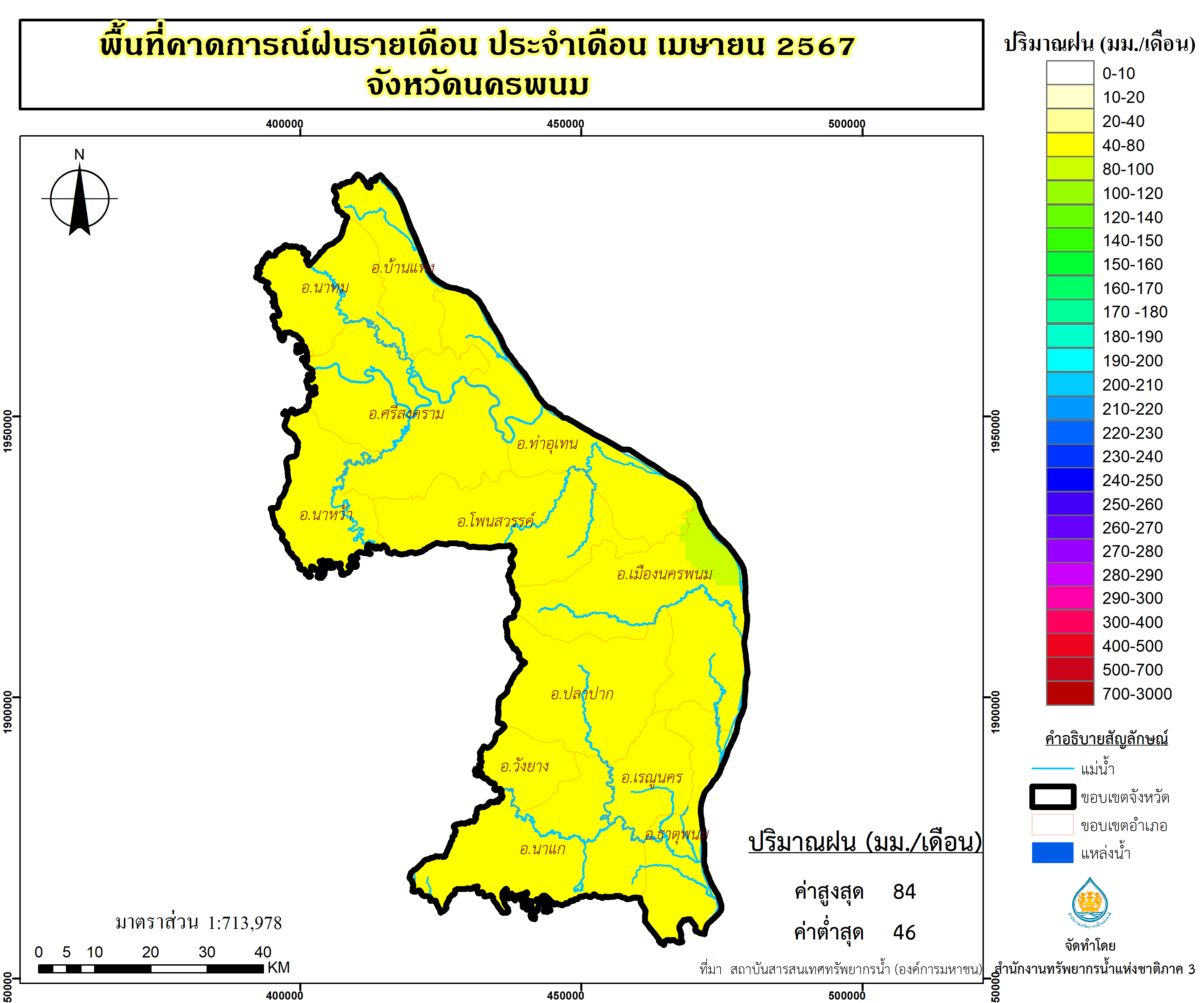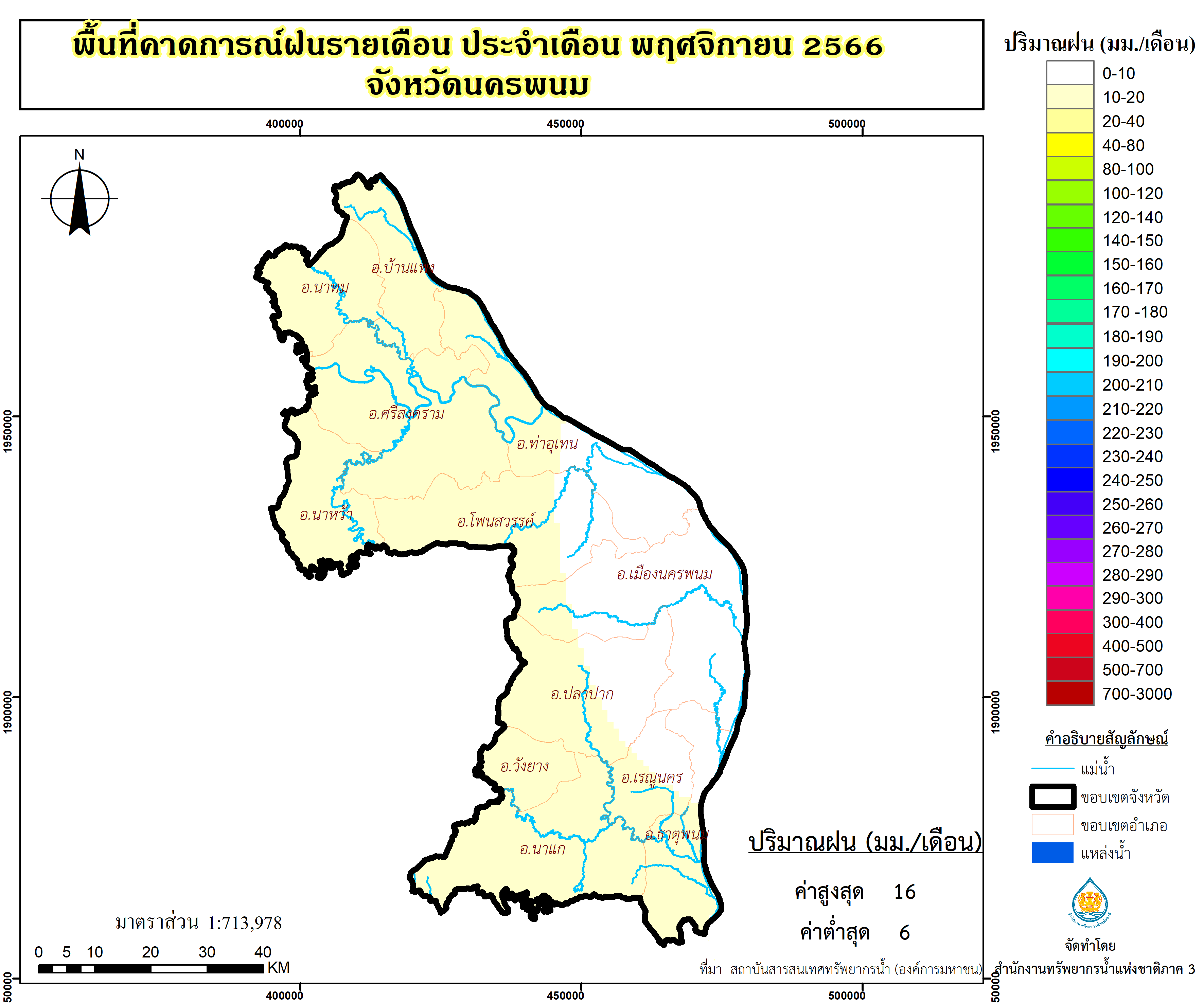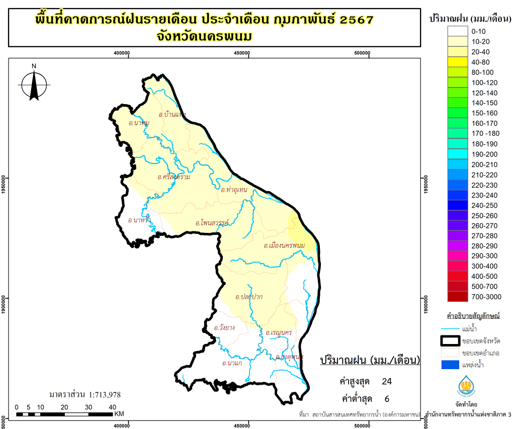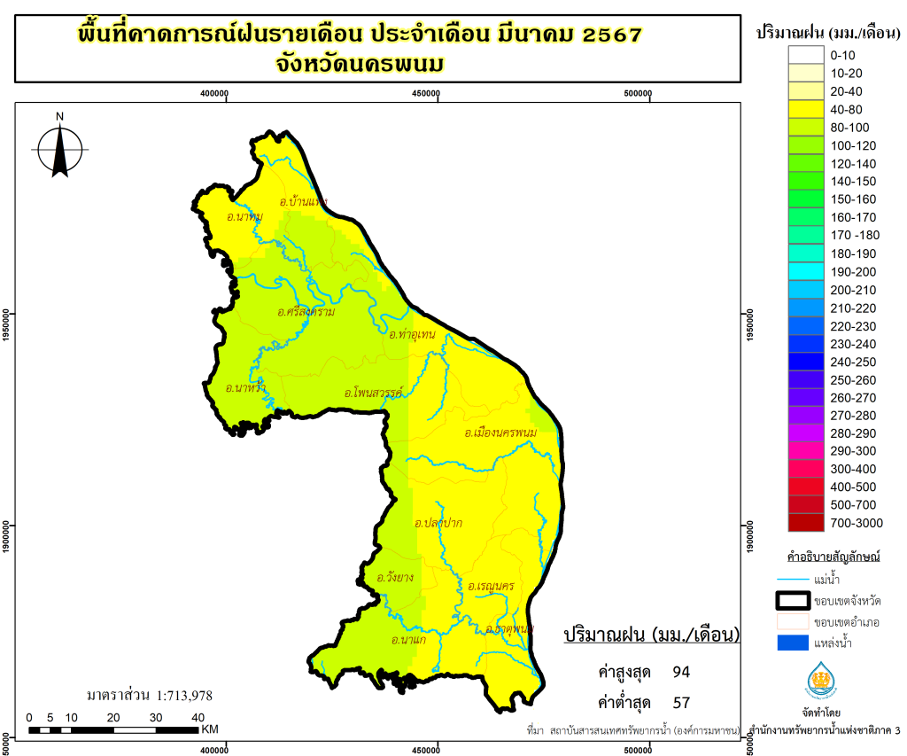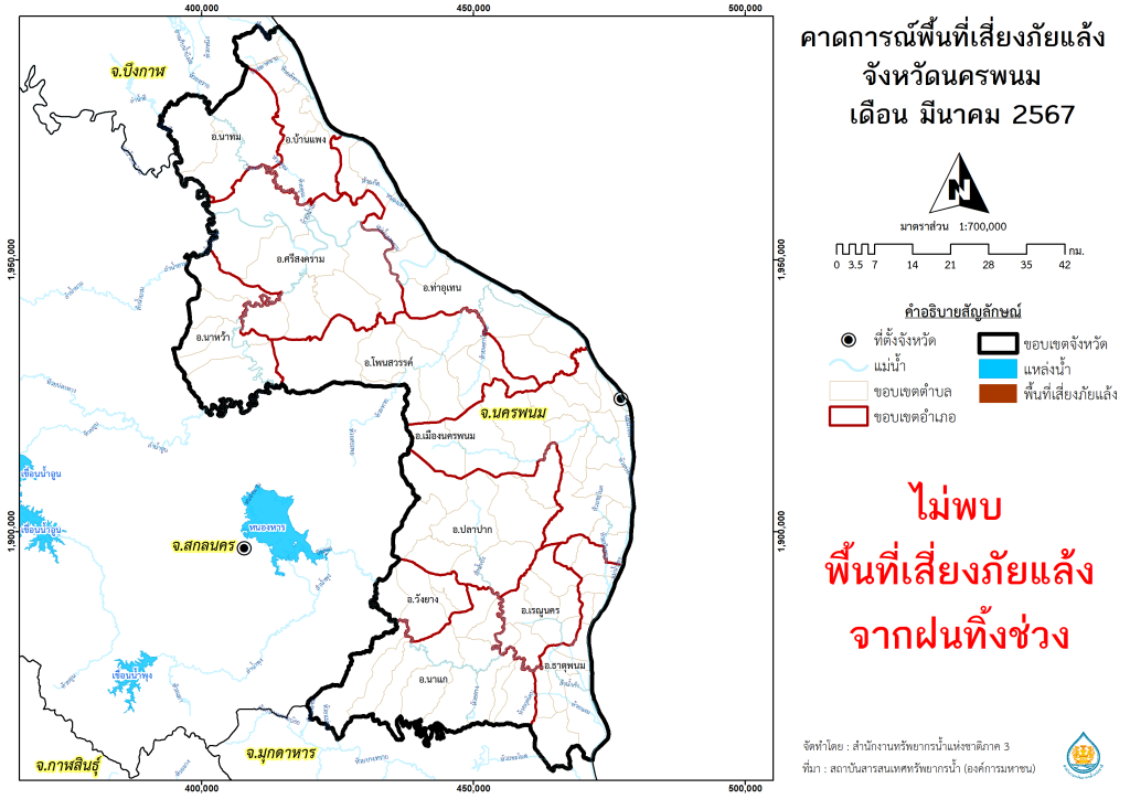 พื้นที่คาดการณ์ฝน จังหวัดนครพนม พ.ศ.2566