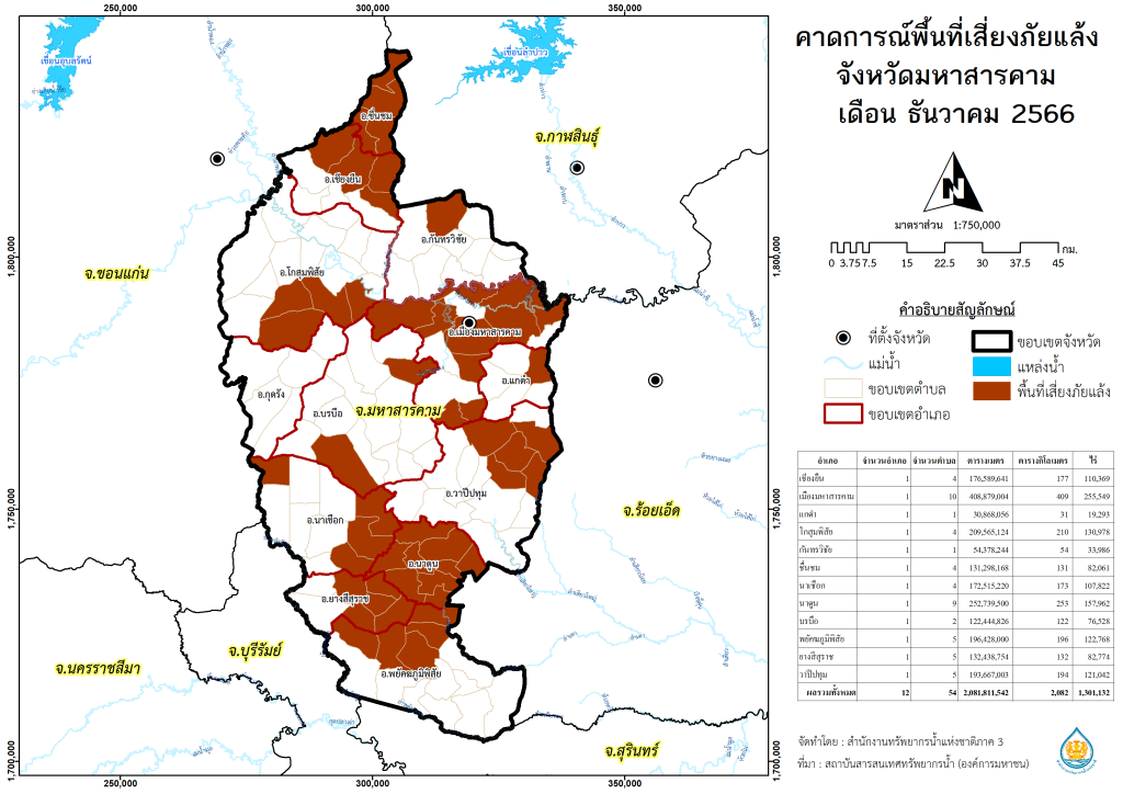 พื้นที่เสี่ยงภัยแล้งจากฝนทิ้งช่วง จังหวัดมหาสารคาม พ.ศ.2566