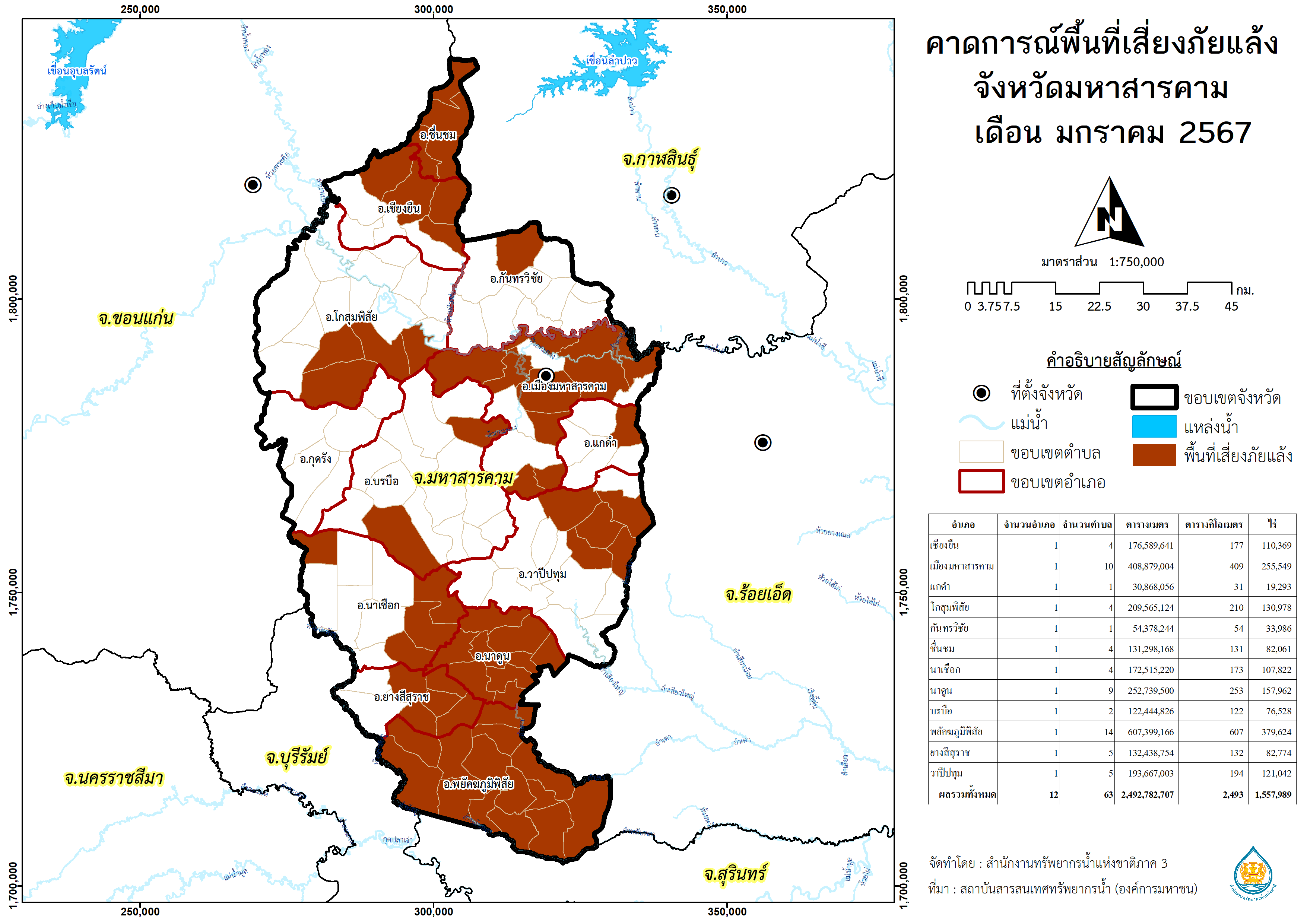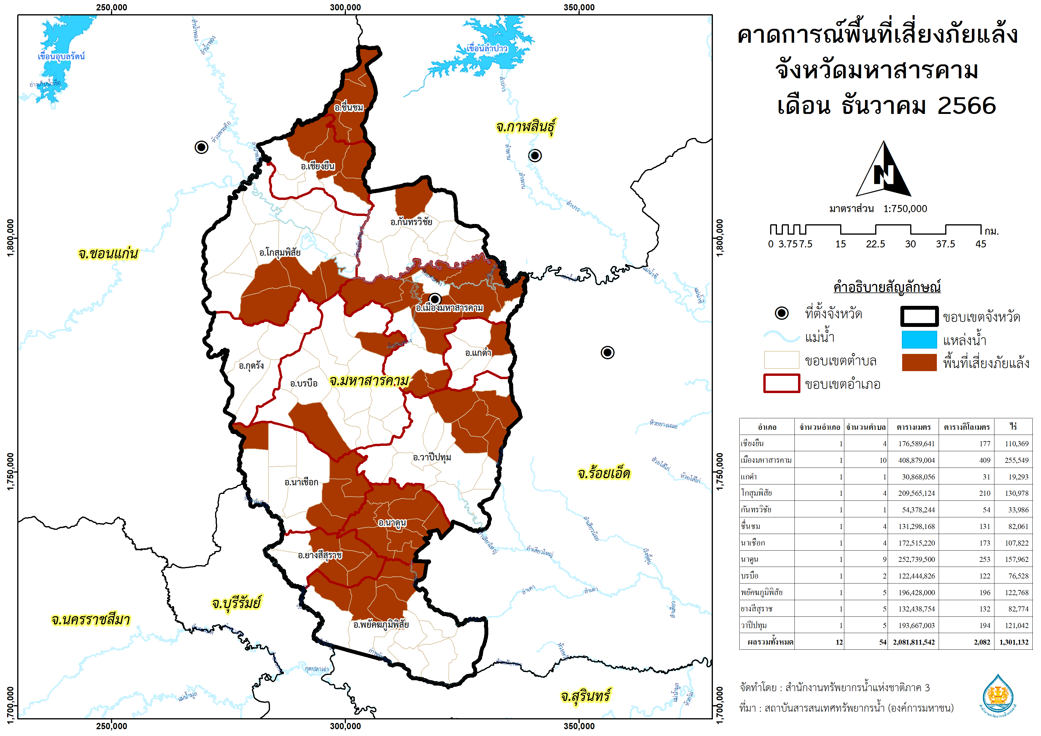 พื้นที่คาดการณ์พื้นที่เสี่ยงอุทกภัย จังหวัดมหาสารคาม พ.ศ.2566
