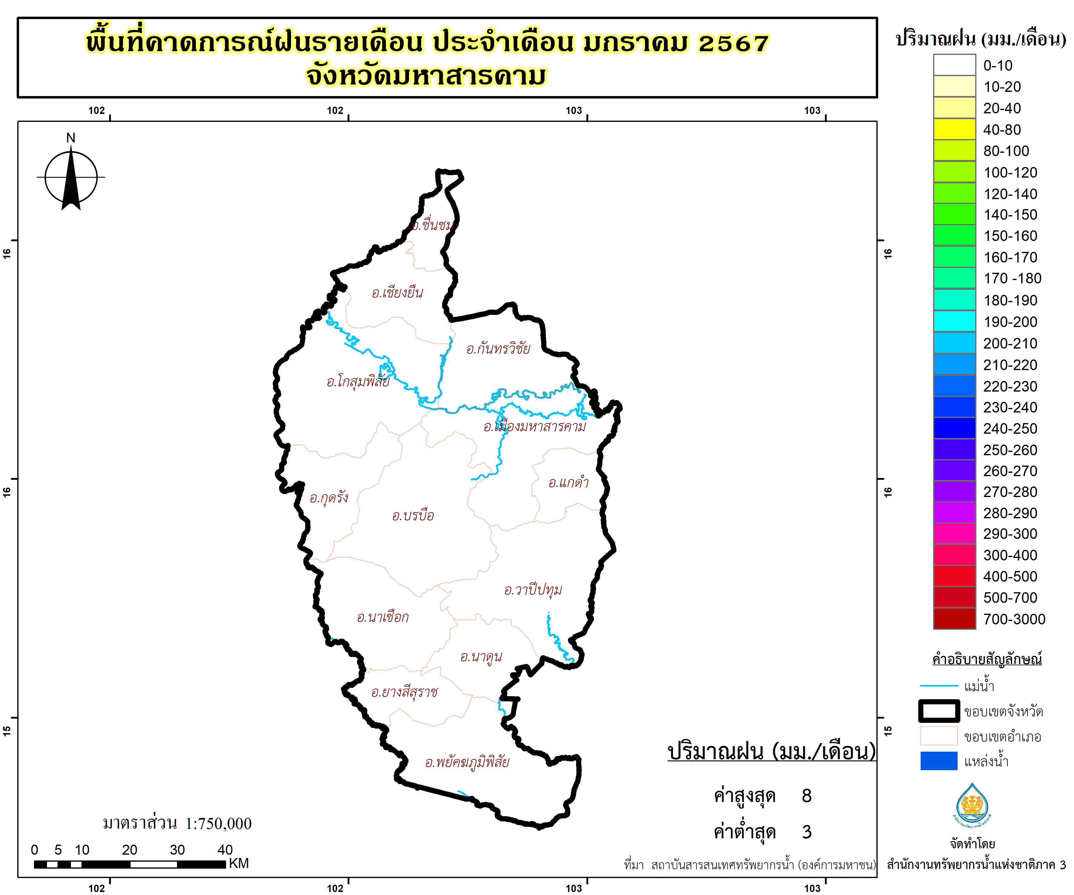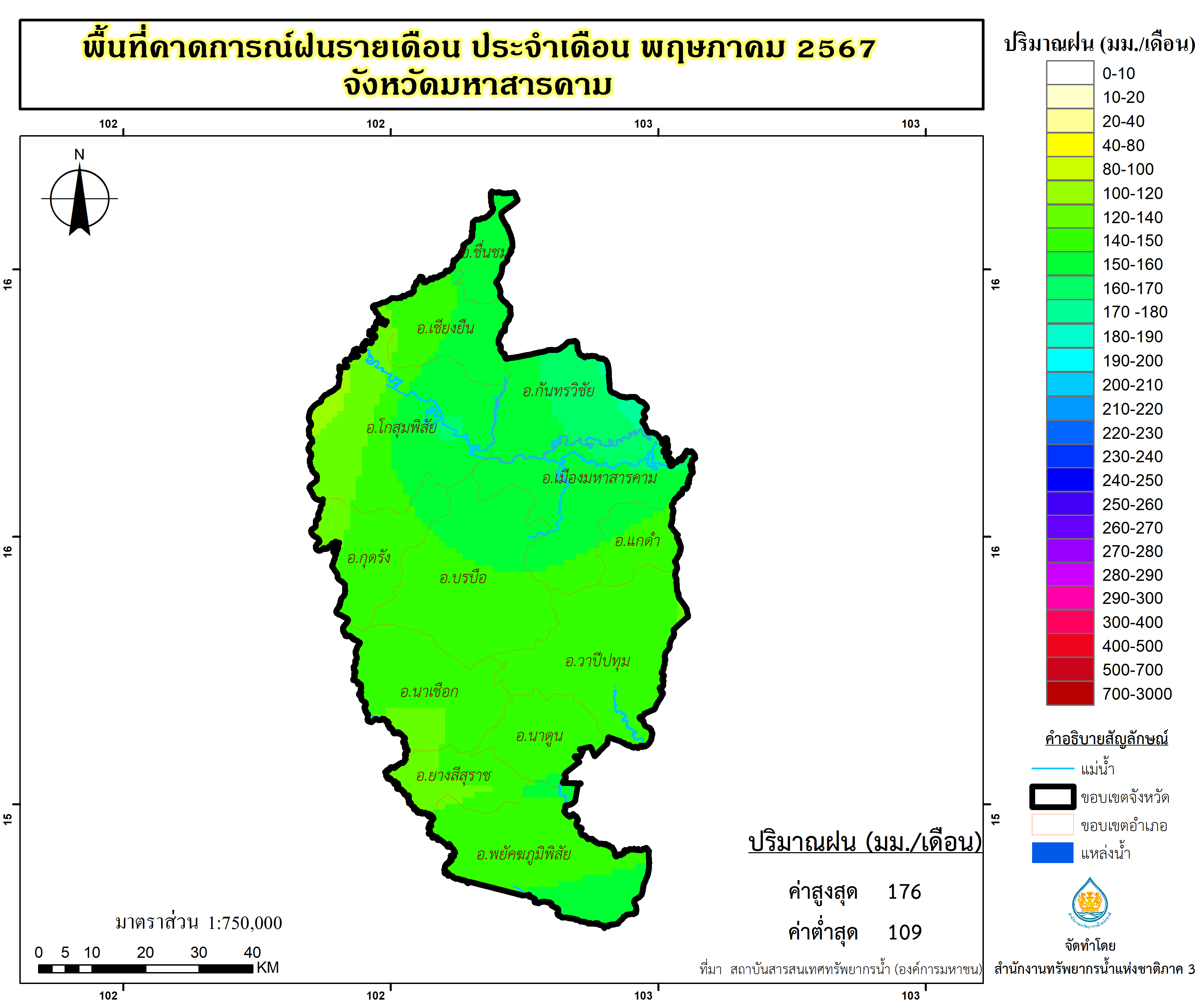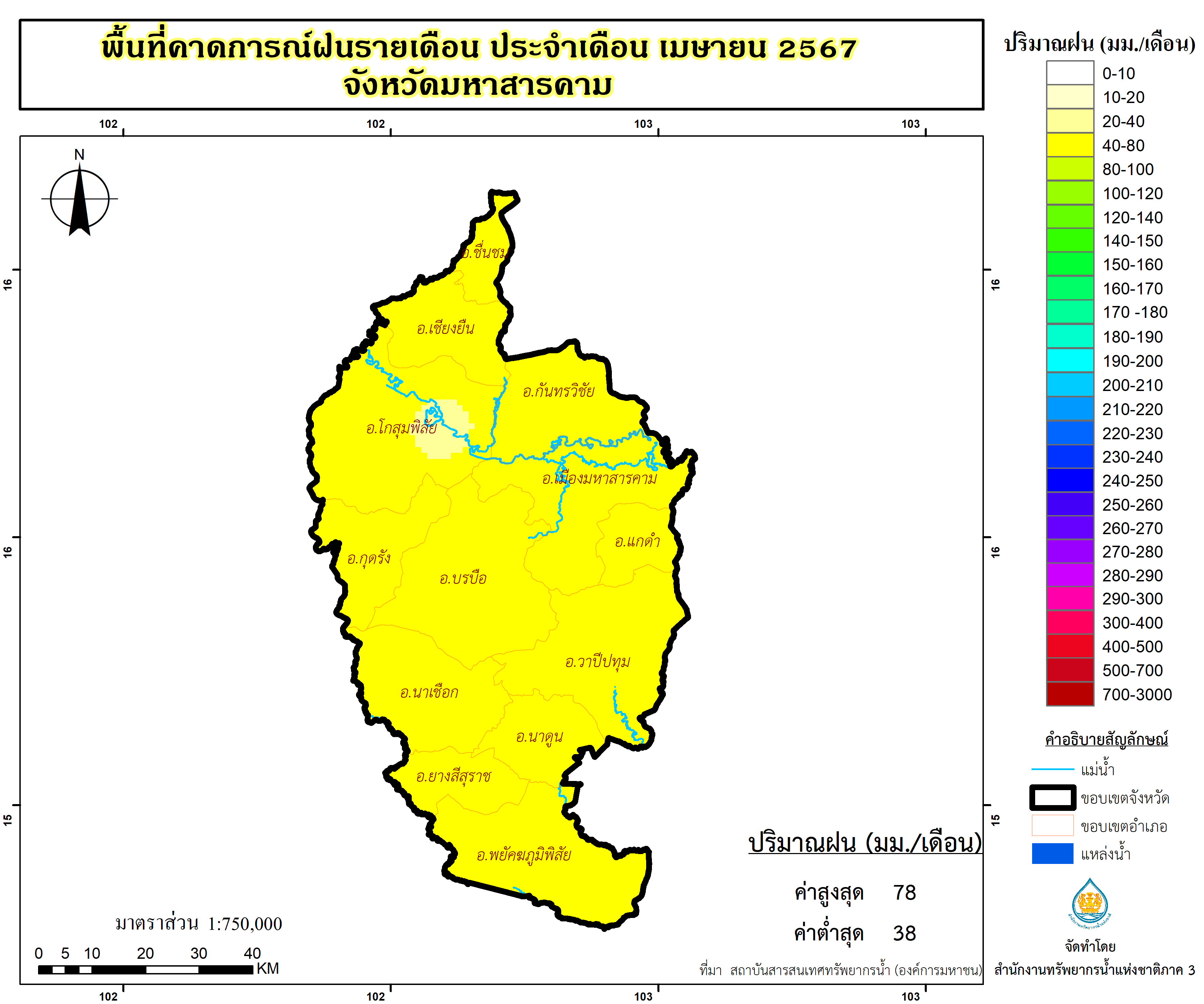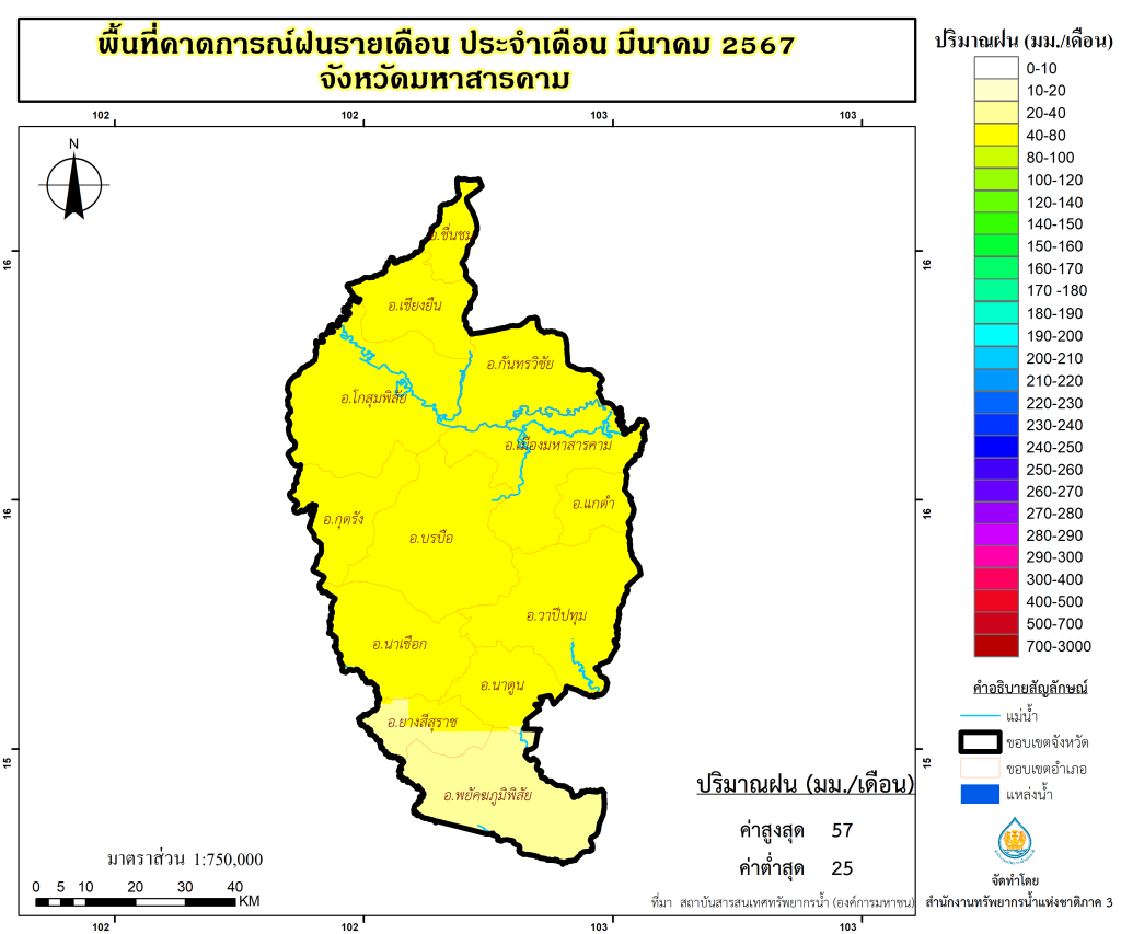 พื้นที่คาดการณ์ฝน จังหวัดมหาสารคาม พ.ศ.2566