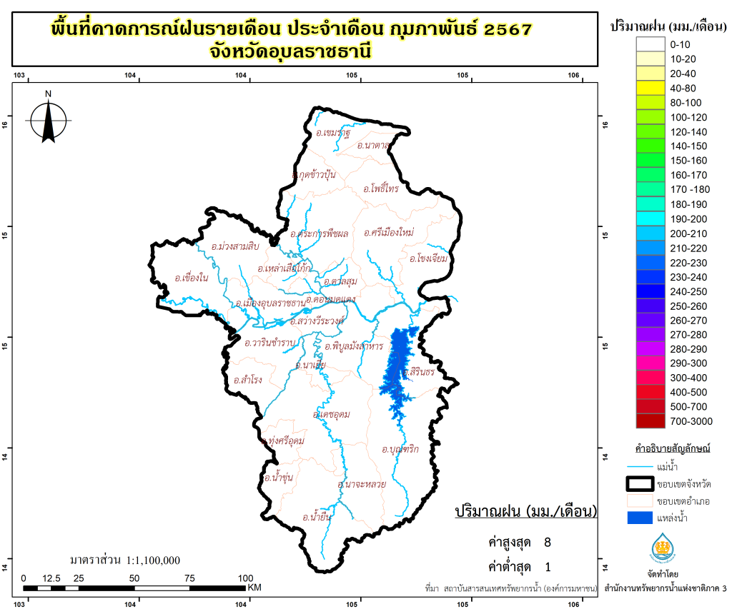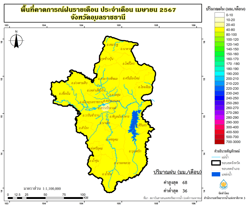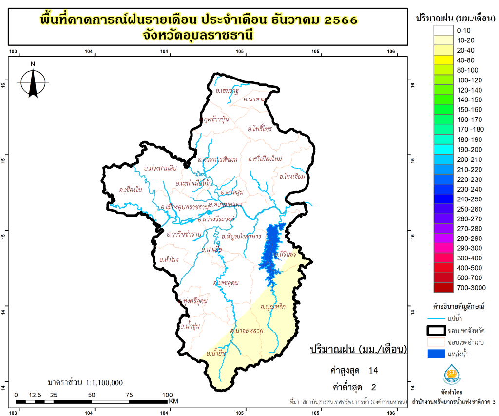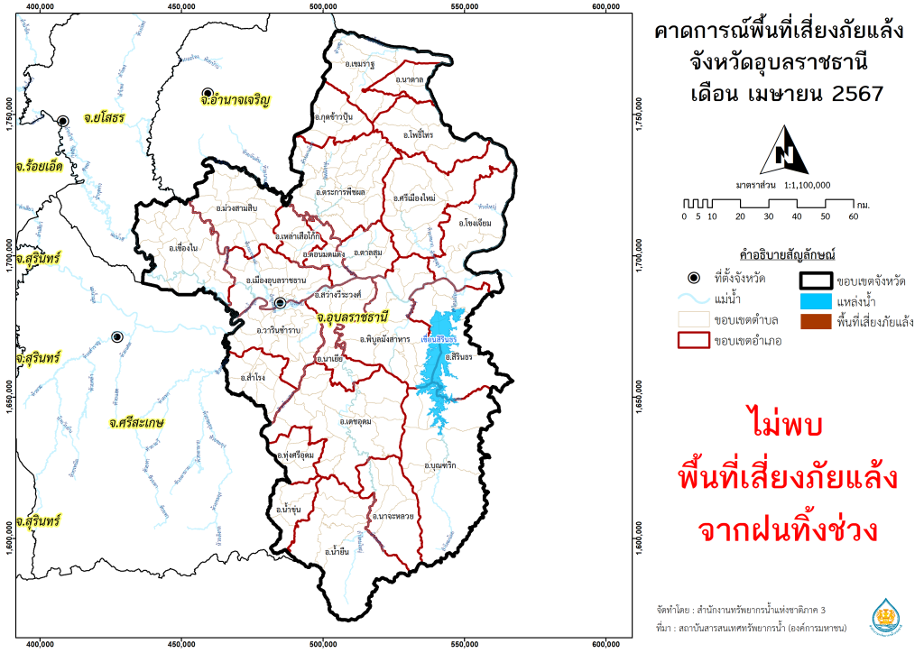 พื้นที่คาดการณ์ฝน จังหวัดอุบลราชธานี พ.ศ.2566