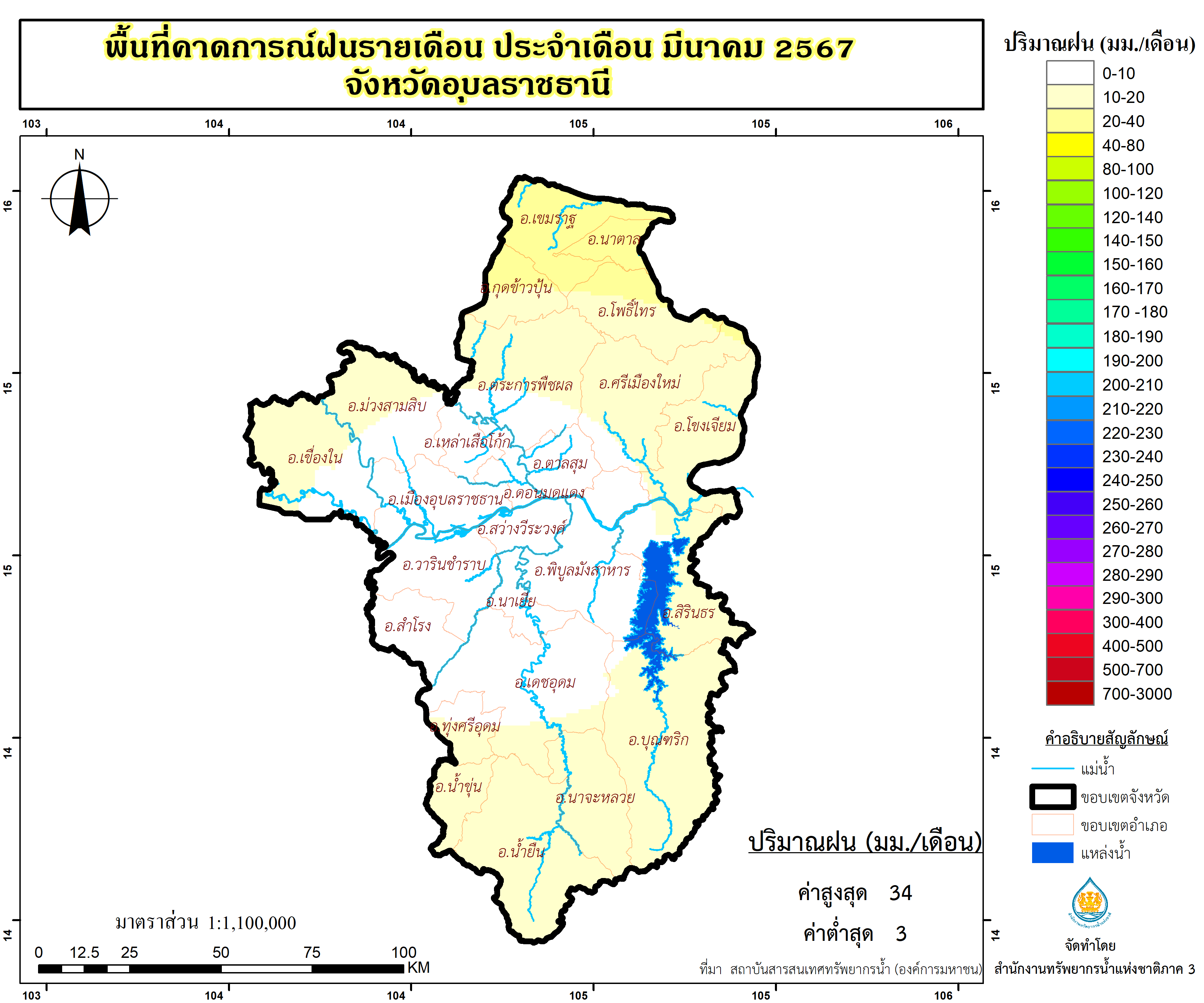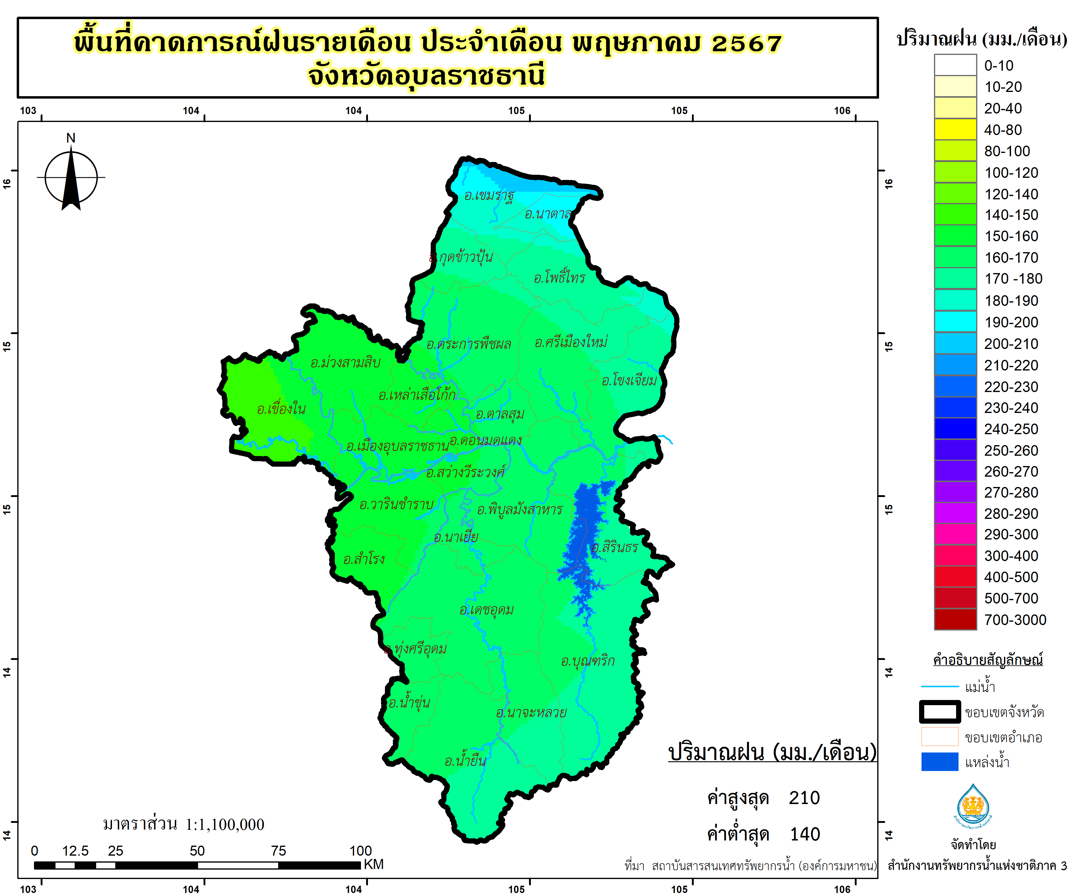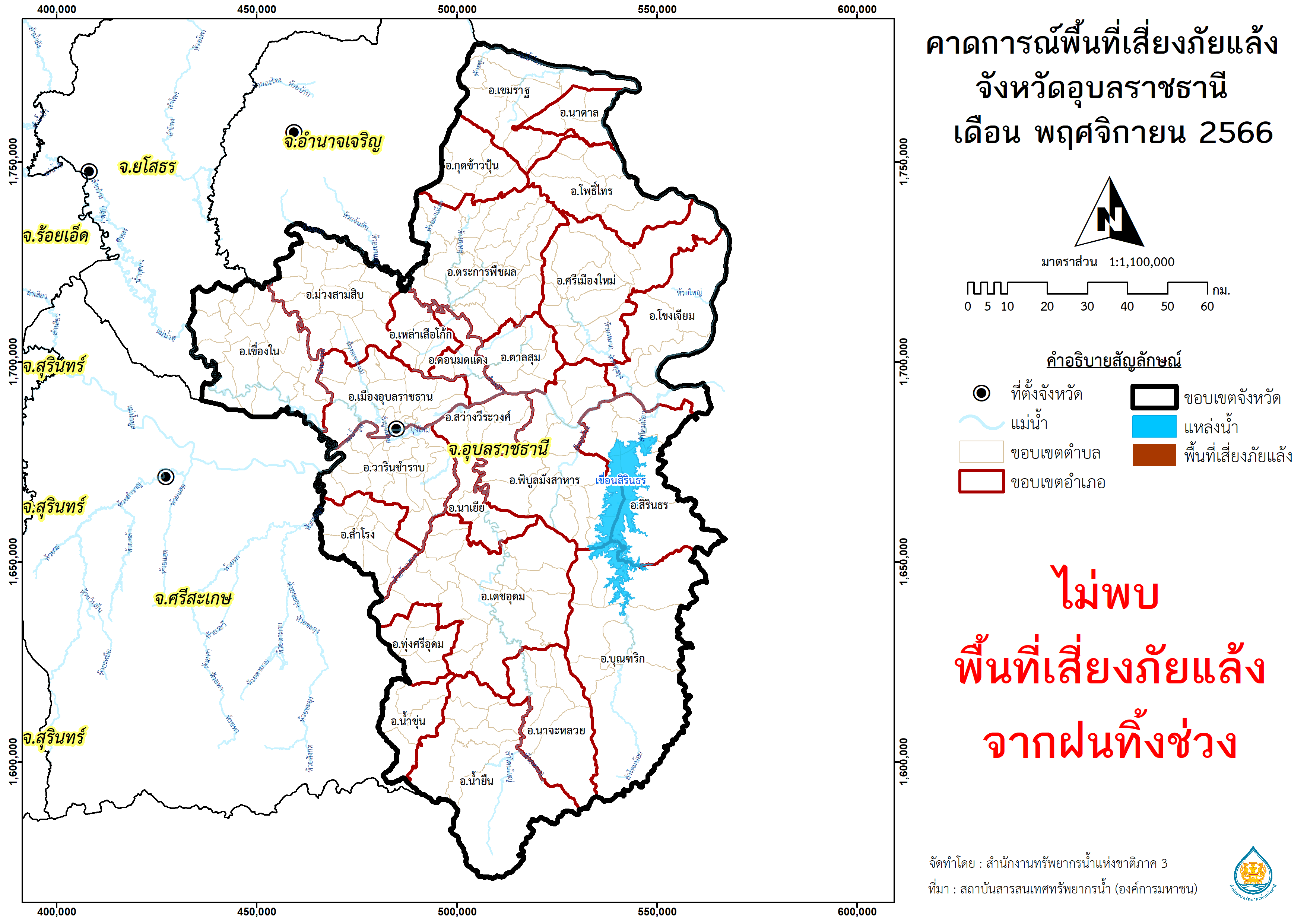 พื้นที่คาดการณ์ฝน จังหวัดอุบลราชธานี พ.ศ.2566