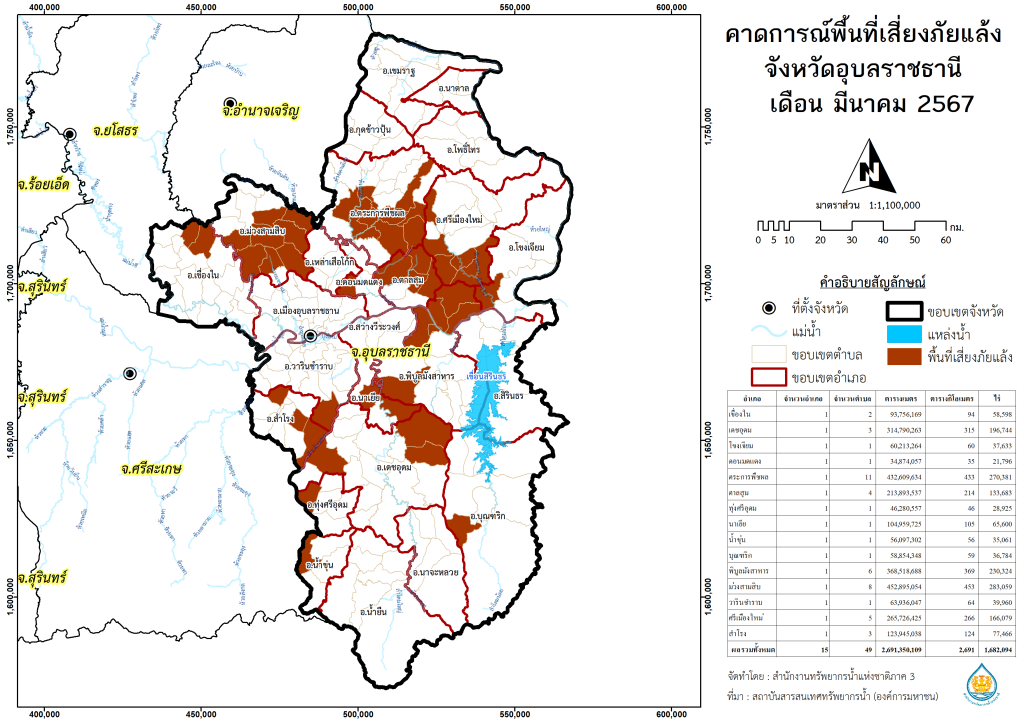 พื้นที่เสี่ยงภัยแล้งจากฝนทิ้งช่วง จังหวัดอุบลราชธานี พ.ศ.2566