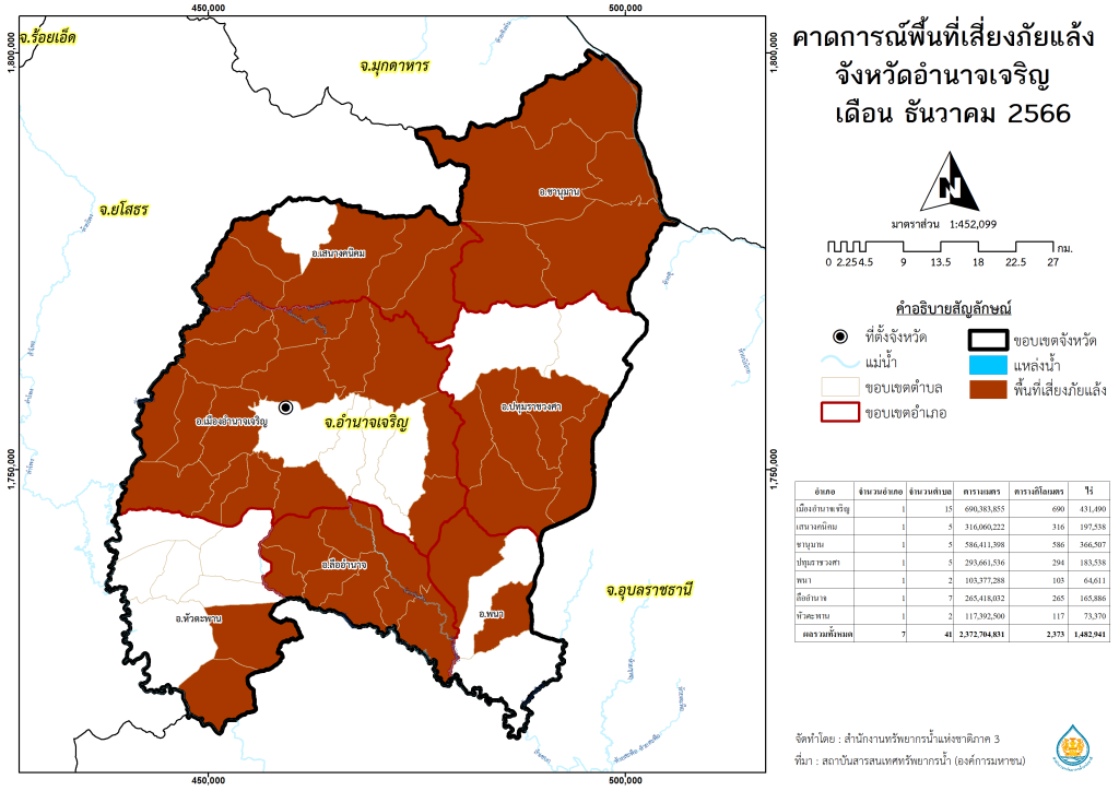 พื้นที่เสี่ยงภัยแล้งจากฝนทิ้งช่วง จังหวัดอำนาจเจริญ พ.ศ.2566 เดือน ธันวาคม พ.ศ.2566 เดือน มกราคม พ.ศ.2567 เดือน กุมภาพันธ์ พ.ศ.2567 เดือน มีนาคม พ.ศ.2567 เดือน เมษายน พ.ศ.2567 เดือน พฤษภาคม พ.ศ.2567 พื้นที่คาดการณ์ฝน จังหวัดอำนาจเจริญ พ.ศ.2566 เดือน ธันวาคม พ.ศ.2566 เดือน มกราคม พ.ศ.2567 เดือน กุมภาพันธ์ พ.ศ.2567 เดือน มีนาคม พ.ศ.2567 เดือน เมษายน พ.ศ.2567 เดือน พฤษภาคม พ.ศ.2567 พื้นที่คาดการณ์พื้นที่เสี่ยงอุทกภัย จังหวัดอำนาจเจริญ พ.ศ.2566 เดือน ธันวาคม พ.ศ.2566 เดือน มกราคม พ.ศ.2567 เดือน กุมภาพันธ์ พ.ศ.2567 เดือน มีนาคม พ.ศ.2567 เดือน เมษายน พ.ศ.2567 เดือน พฤษภาคม พ.ศ.2567