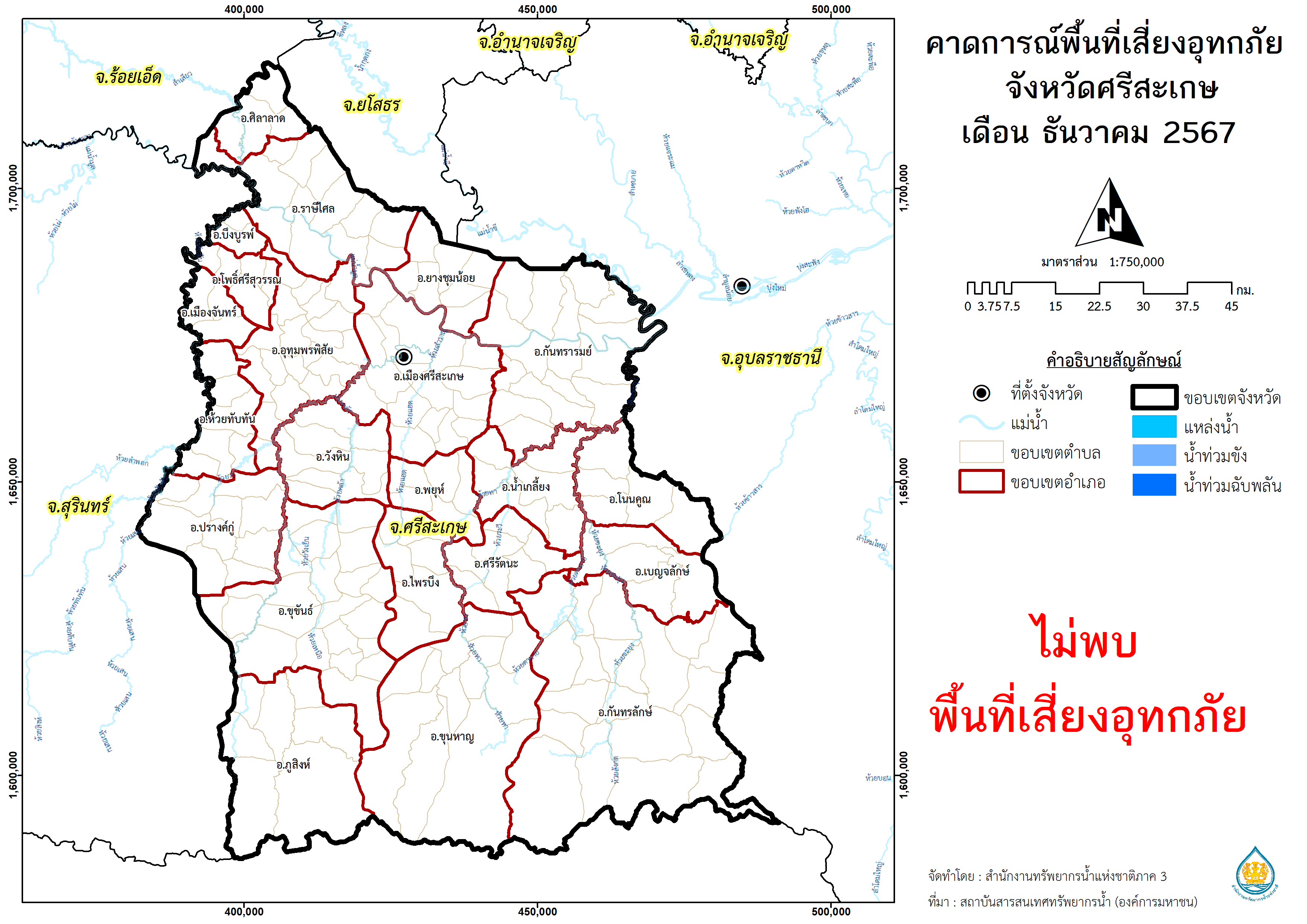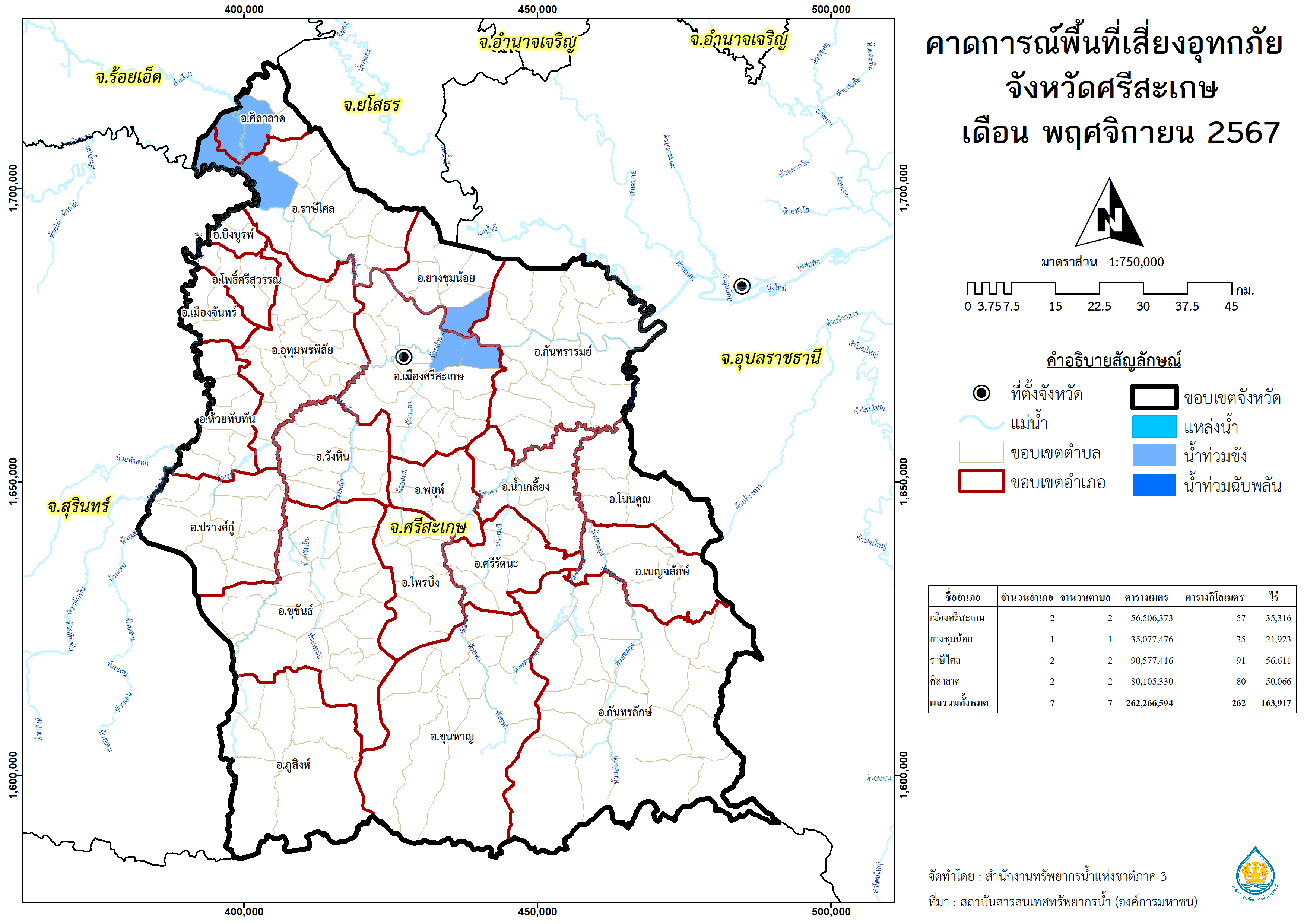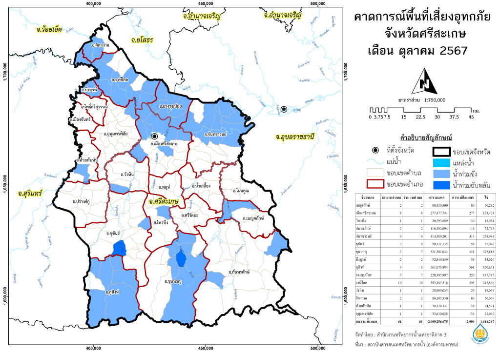 พื้นที่คาดการณ์พื้นที่เสี่ยงอุทกภัย จังหวัดศรีสะเกษ พ.ศ.2567