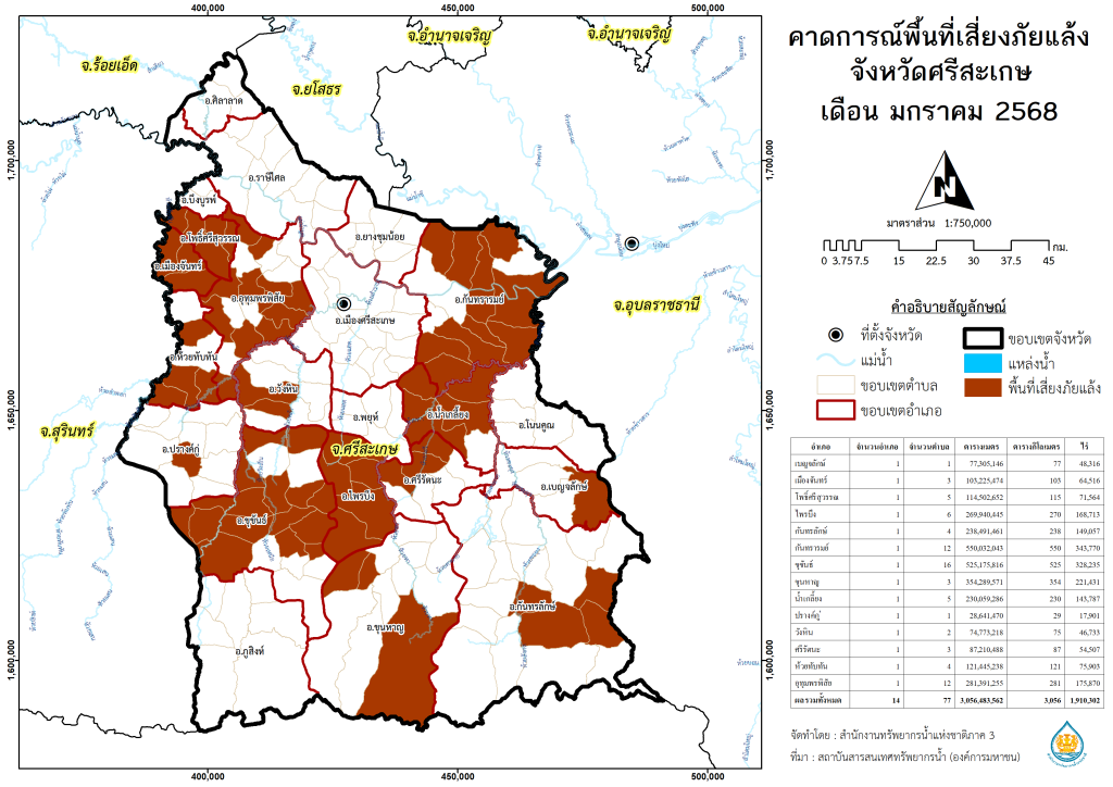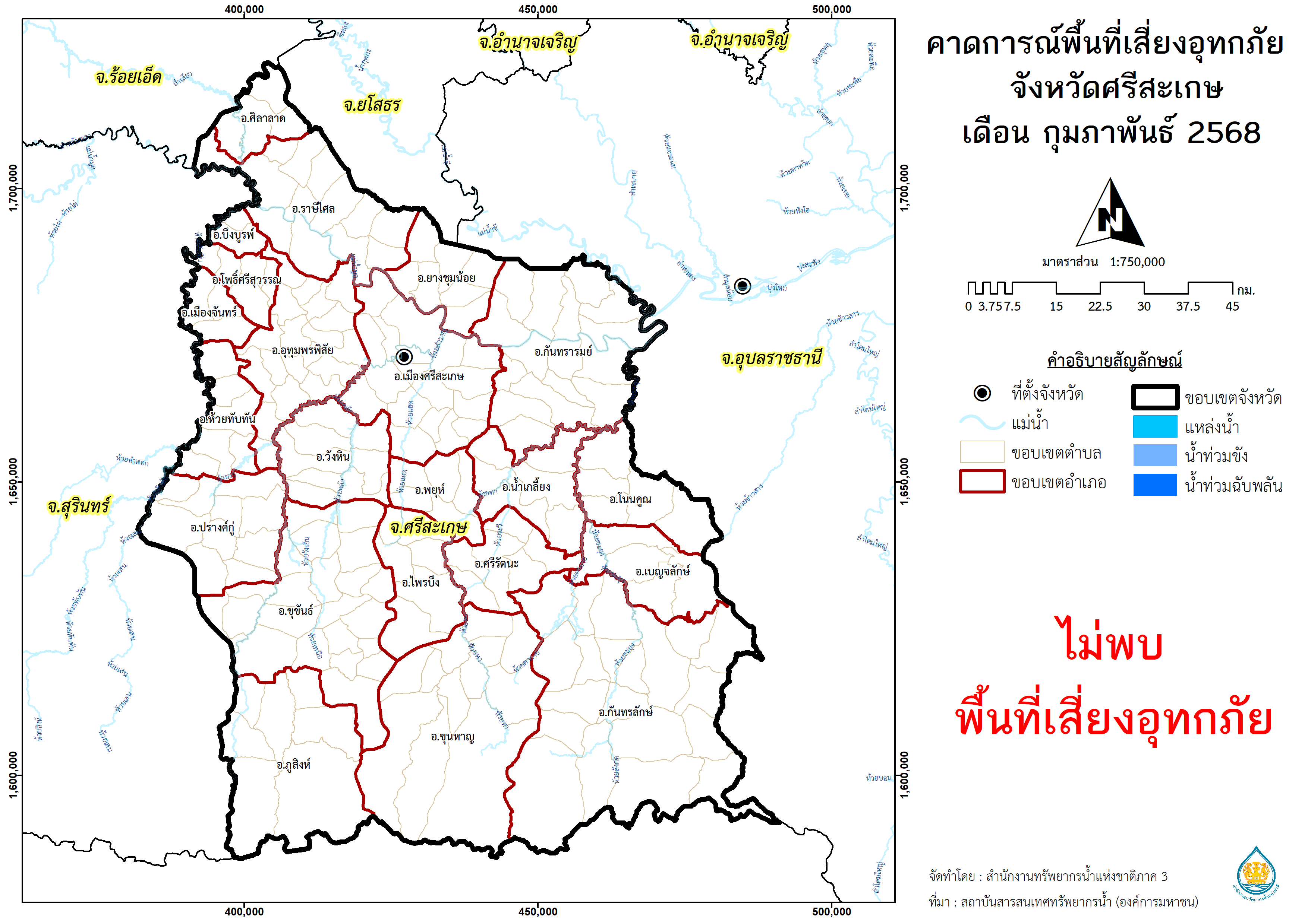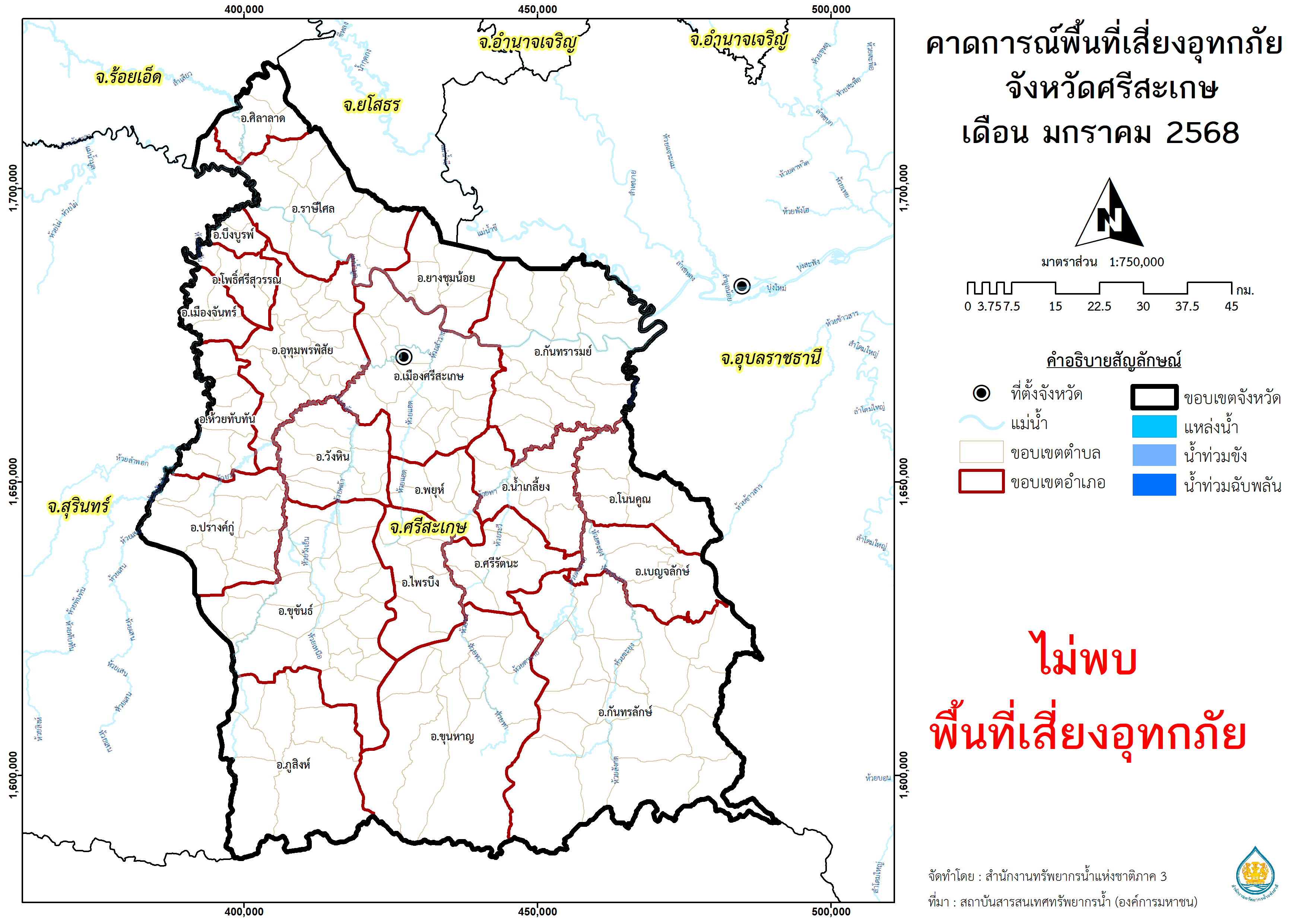 พื้นที่คาดการณ์พื้นที่เสี่ยงอุทกภัย จังหวัดศรีสะเกษ พ.ศ.2567