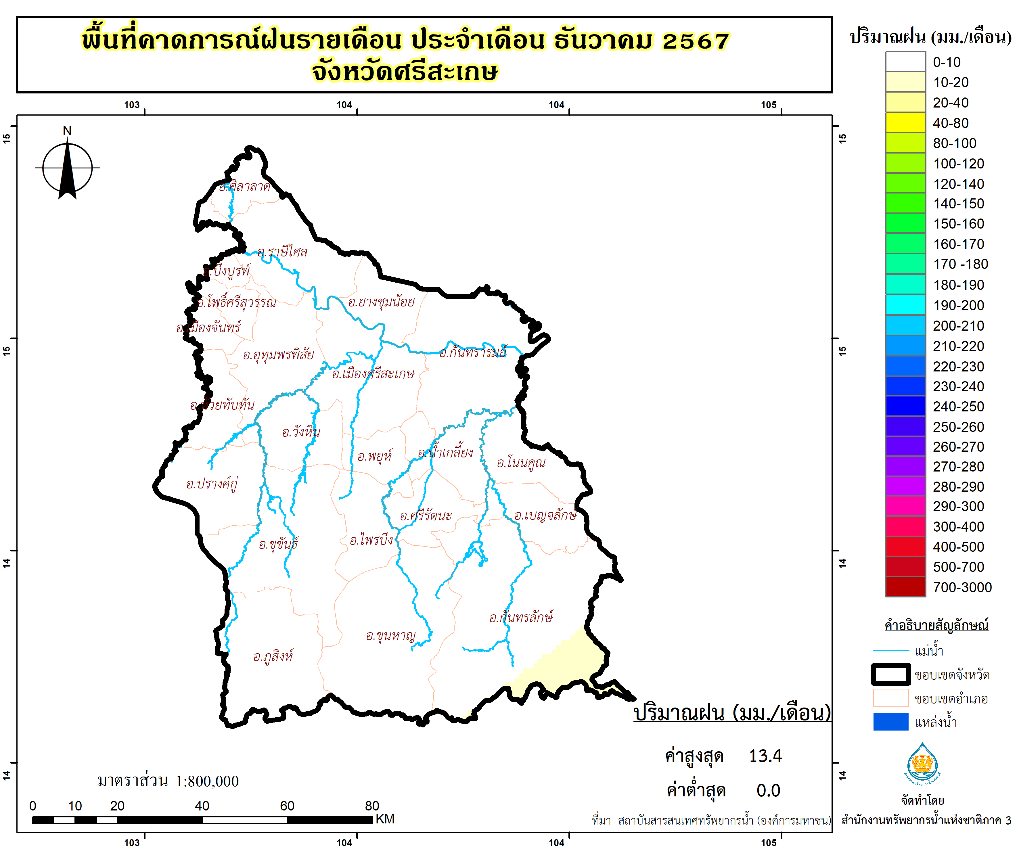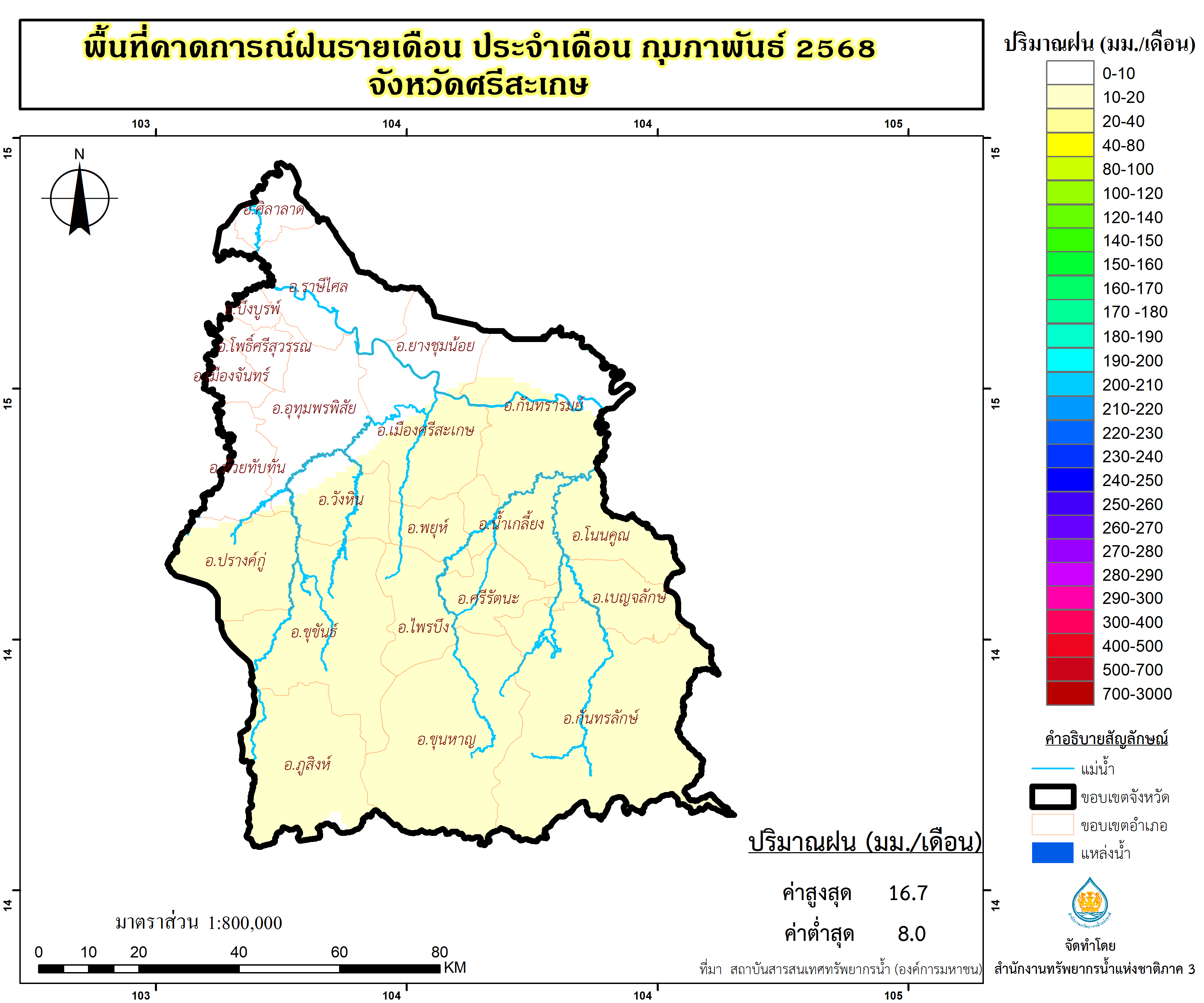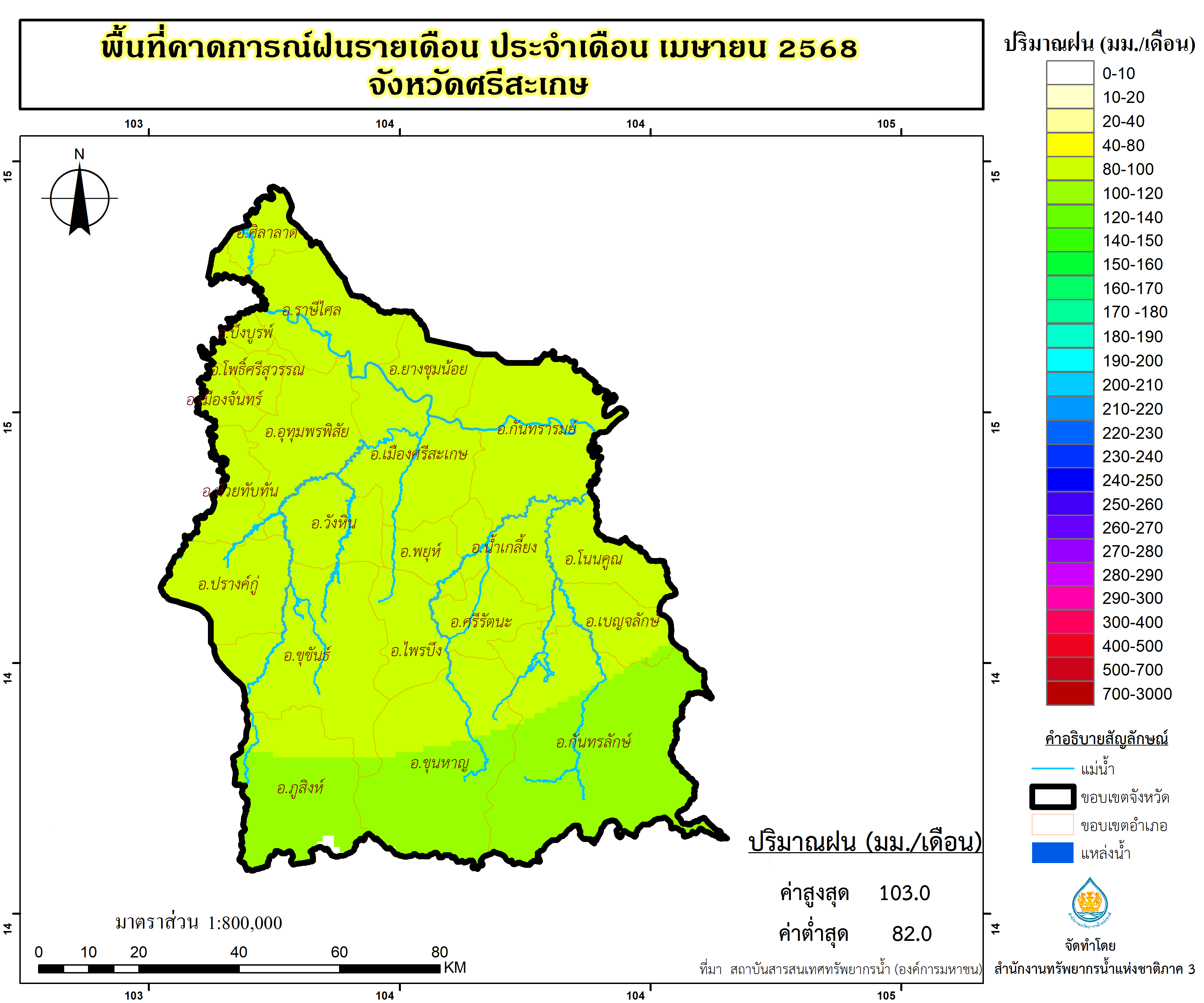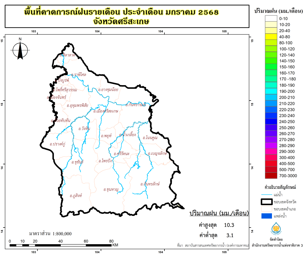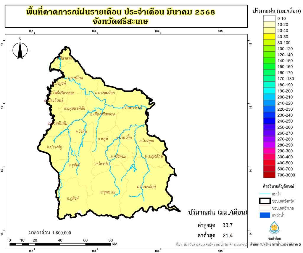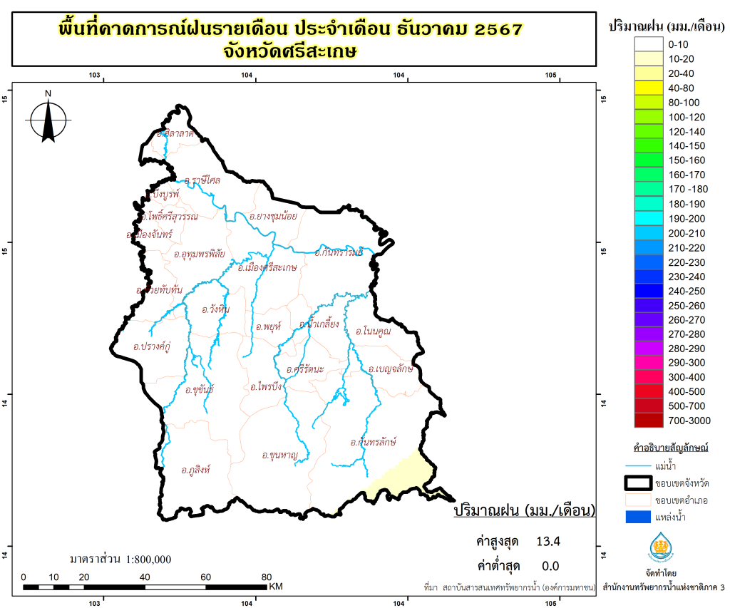 พื้นที่คาดการณ์ฝน จังหวัดศรีสะเกษ พ.ศ.2567