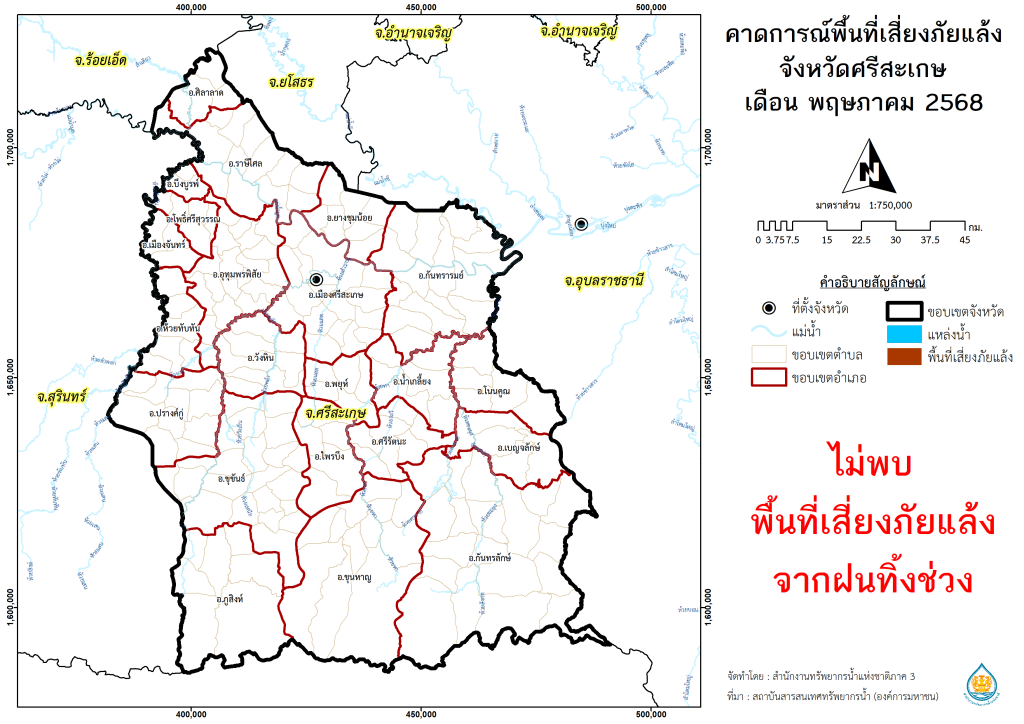 พื้นที่เสี่ยงภัยแล้งจากฝนทิ้งช่วง จังหวัดศรีสะเกษ พ.ศ.2567