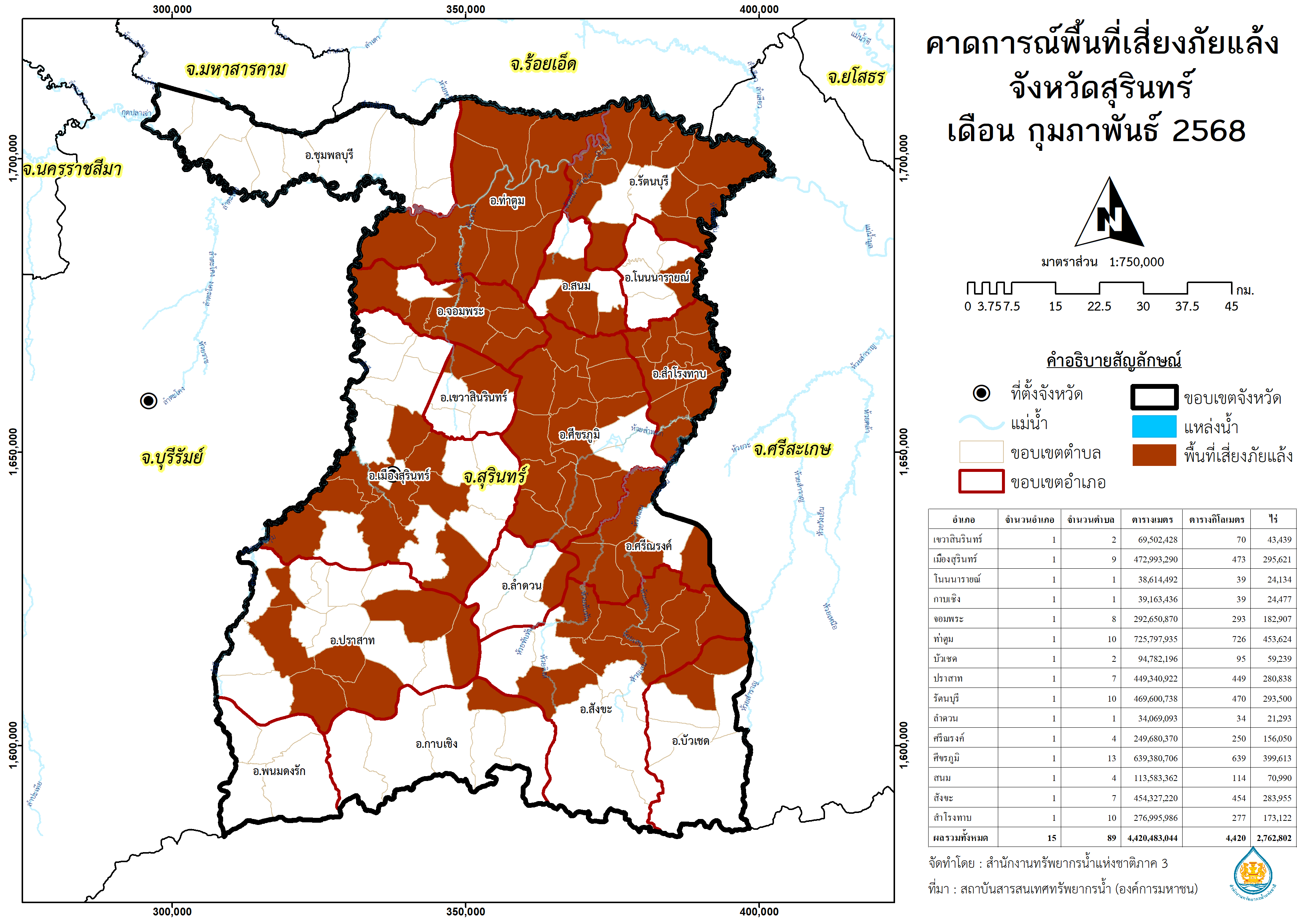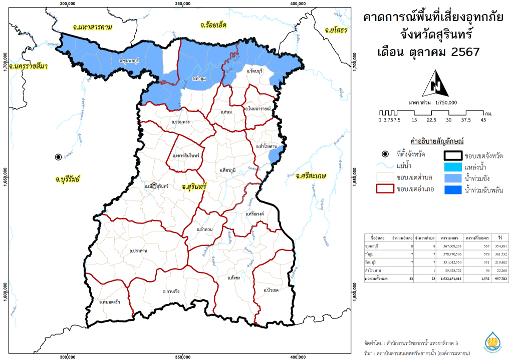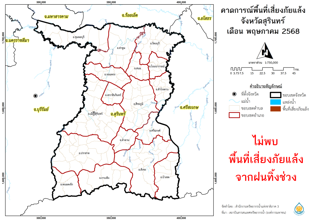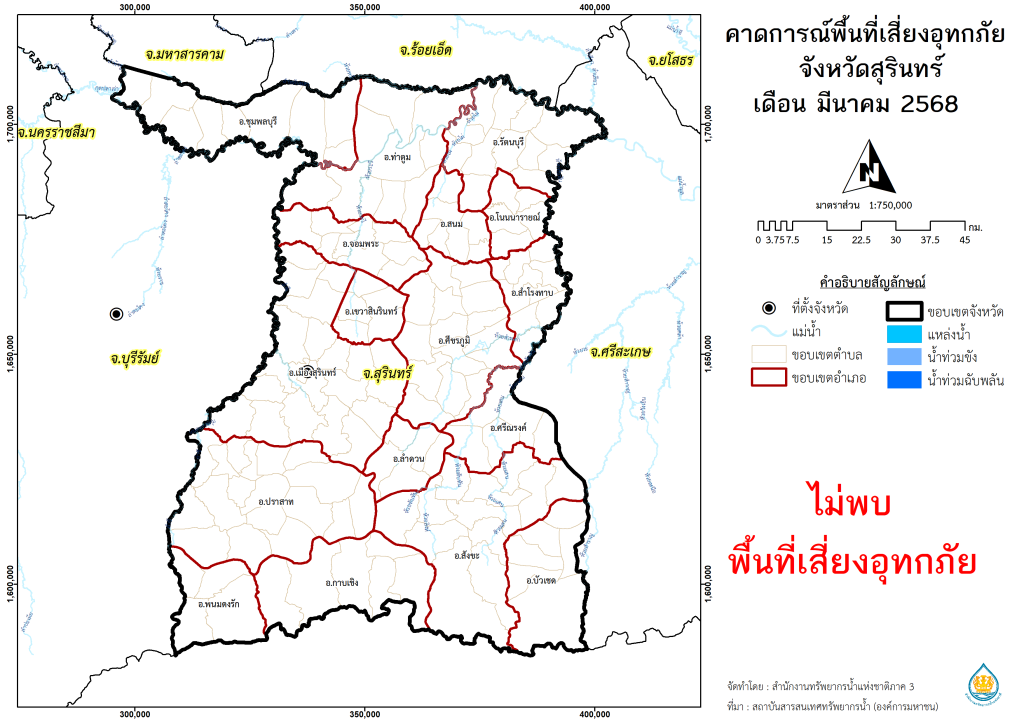 พื้นที่เสี่ยงภัยแล้งจากฝนทิ้งช่วง จังหวัดสุรินทร์ พ.ศ.2567 เดือน ธันวาคม พ.ศ.2567 เดือน มกราคม พ.ศ.2568 เดือน กุมภาพันธ์ พ.ศ.2568 เดือน มีนาคม พ.ศ.2568 เดือน เมษายน พ.ศ.2568 เดือน พฤษภาคม พ.ศ.2568 พื้นที่คาดการณ์พื้นที่เสี่ยงอุทกภัย จังหวัดสุรินทร์ พ.ศ.2567 เดือน ตุลาคม พ.ศ.2567 เดือน พฤศจิกายน พ.ศ.2567 เดือน ธันวาคม พ.ศ.2567 เดือน มกราคม พ.ศ.2568 เดือน กุมภาพันธ์ พ.ศ.2568 เดือน มีนาคม พ.ศ.2568 พื้นที่คาดการณ์ฝน จังหวัดสุรินทร์ พ.ศ.2567 เดือน พฤศจิกายน พ.ศ.2567 เดือน ธันวาคม พ.ศ.2567 เดือน มกราคม พ.ศ.2568 เดือน กุมภาพันธ์ พ.ศ.2568 เดือน มีนาคม พ.ศ.2568 เดือน เมษายน พ.ศ.2568